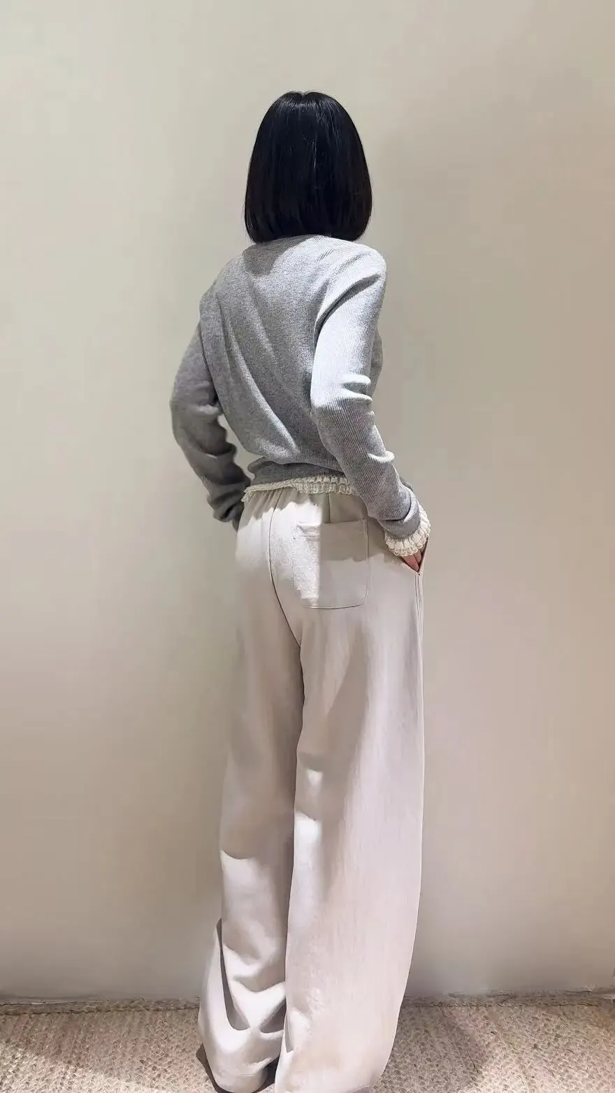 裤子垂顺又带有微弯刀设计,舒适感超棒,可以从春穿到夏