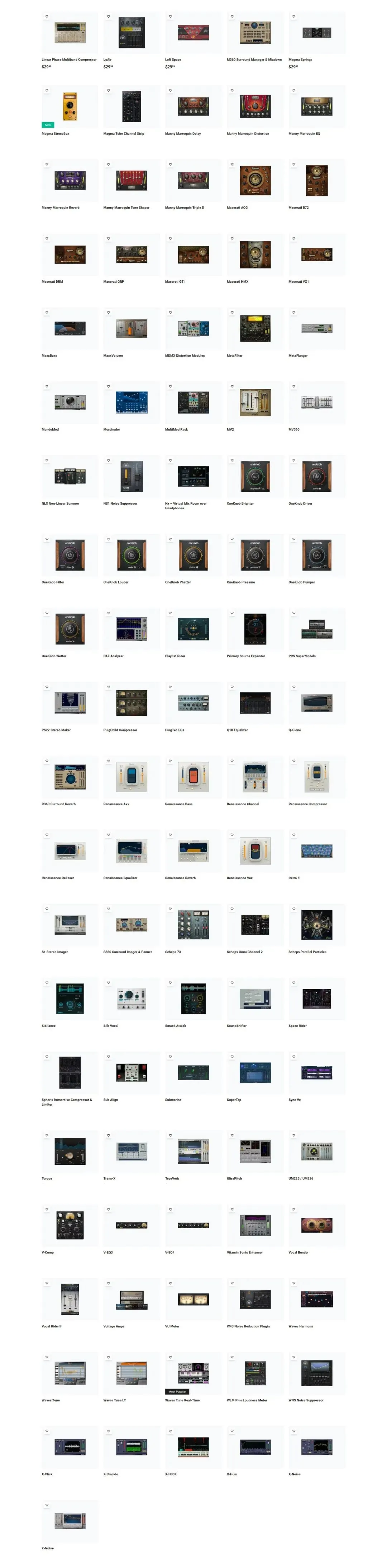 流行常备人声插件,如Waves Tune Real-Time、Waves Tune、Waves Harmony、Vocal Rider®、Vocal Bender、R-Vox,以及用于人声降噪的开创性插件Clarity Vx。模拟建模插件,包含了CLA-2A、CLA-76、全套API插件、CLA MixHub、Scheps Omni、Kramer Tape、BB Tubes、PuigTec EQ等等。还有:广受好评的F6 动态EQ、经典的C6多段压缩器、全套Renaissance插件、用于母带制作的全套L系列插件、全套H系列插件,以及数十个额外插件用于音乐制作效果、专业混音乃至母带制作。