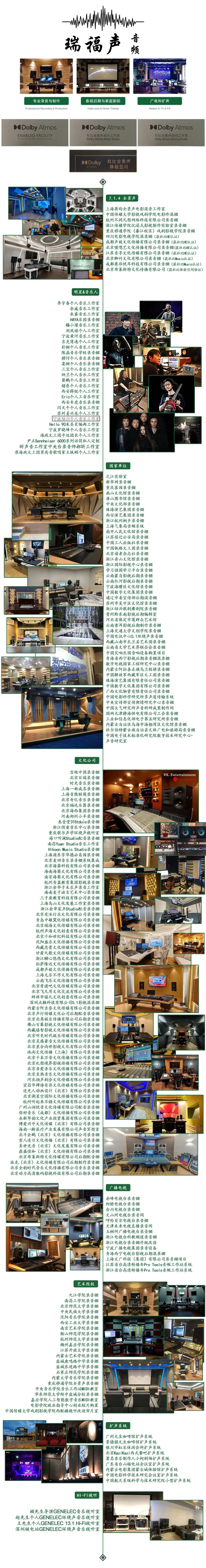 北京瑞福声科技有限公司成立于2013年4月,是一家主要致力于广播、电影、电视、音乐制作、会议、公共扩声及专业声学设计等领域的系统工程集成,技术咨询,产品开发,专业产品销售的高端技术系统集成为一体的现代化企业。瑞福声以“服务为本、客户至上”的原则,为专业音视频的艺术家、工作者们提供最新的资讯与最全面的服务。瑞福声自成立之日起,就为专业用户其中既涉及录音棚、音乐制作、电影、广电及影视剧前期录音,后期制作、剧场、高档会所等诸多媒体领域提供了最全面的服务。