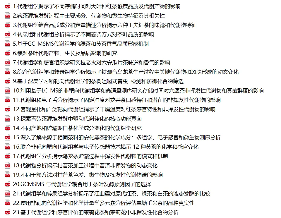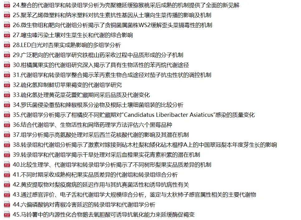80篇果蔬与茶叶代谢组学研究精选文献合集!快来领取吧!