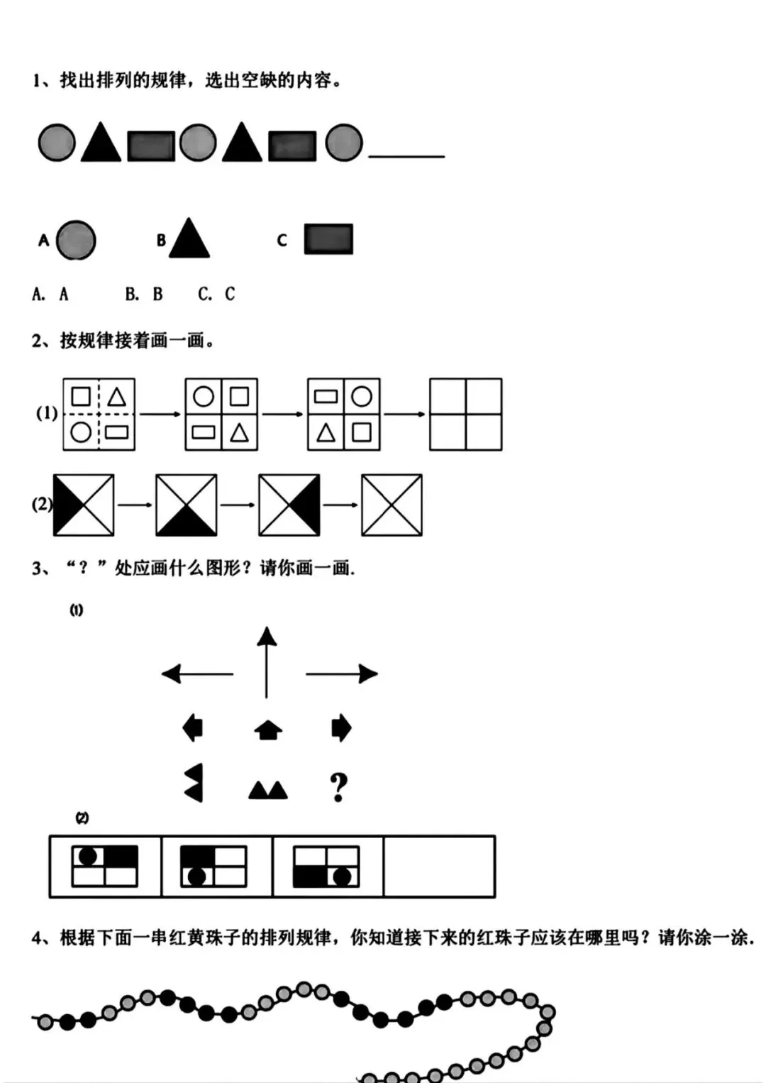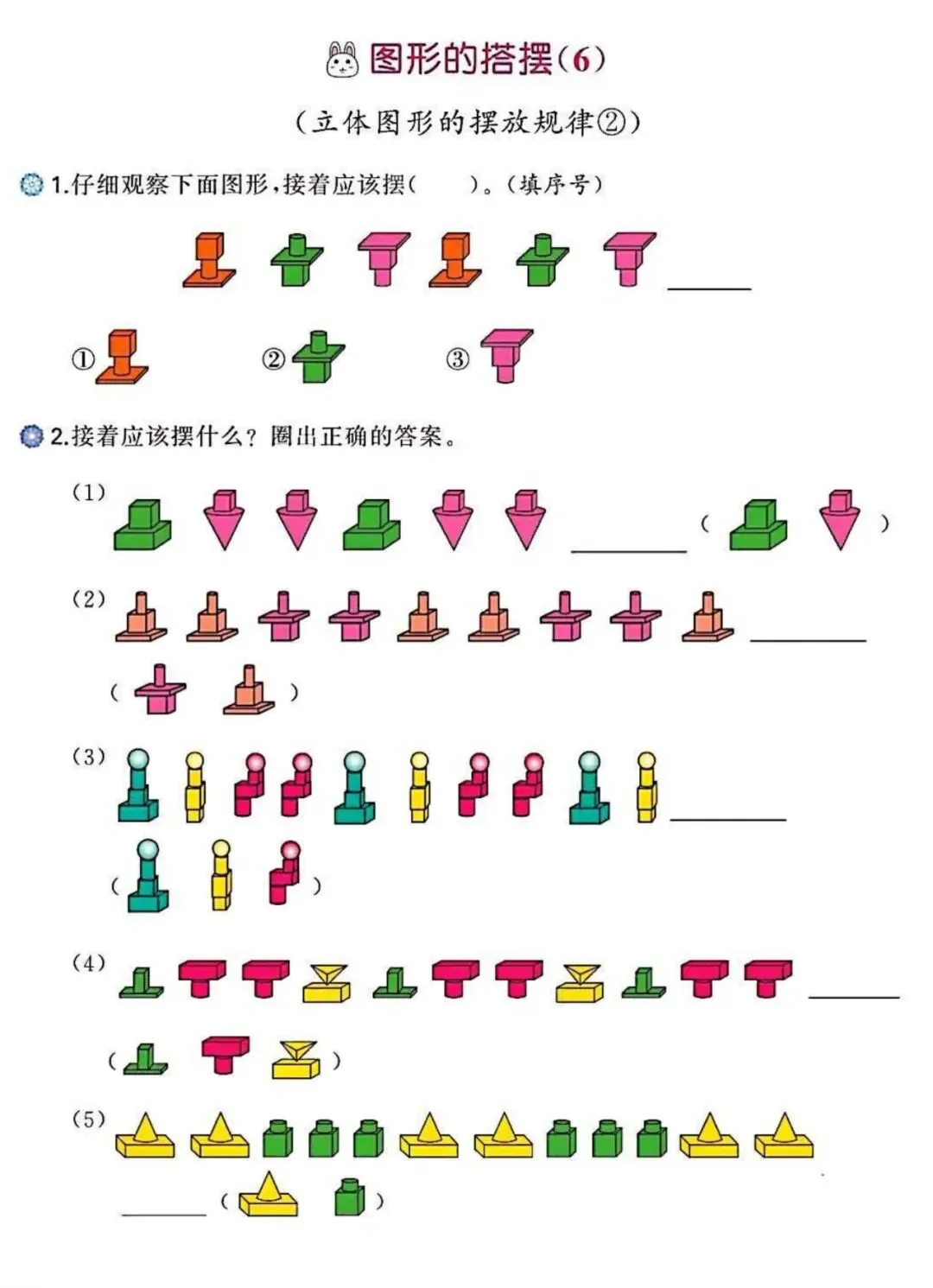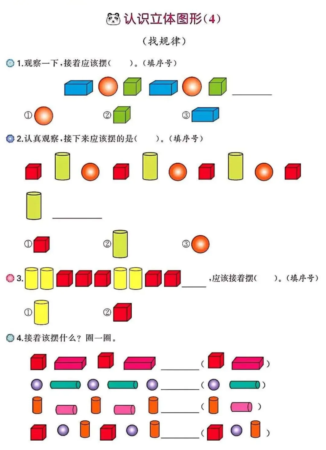 2026春一年级下册通用版数学《图形找规律+认识图形专项练习》,可打印