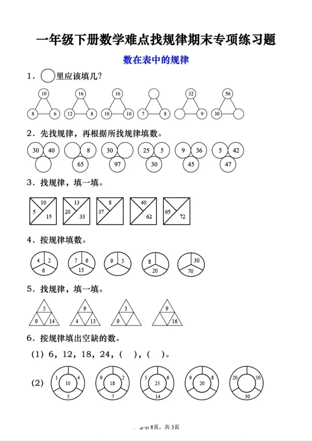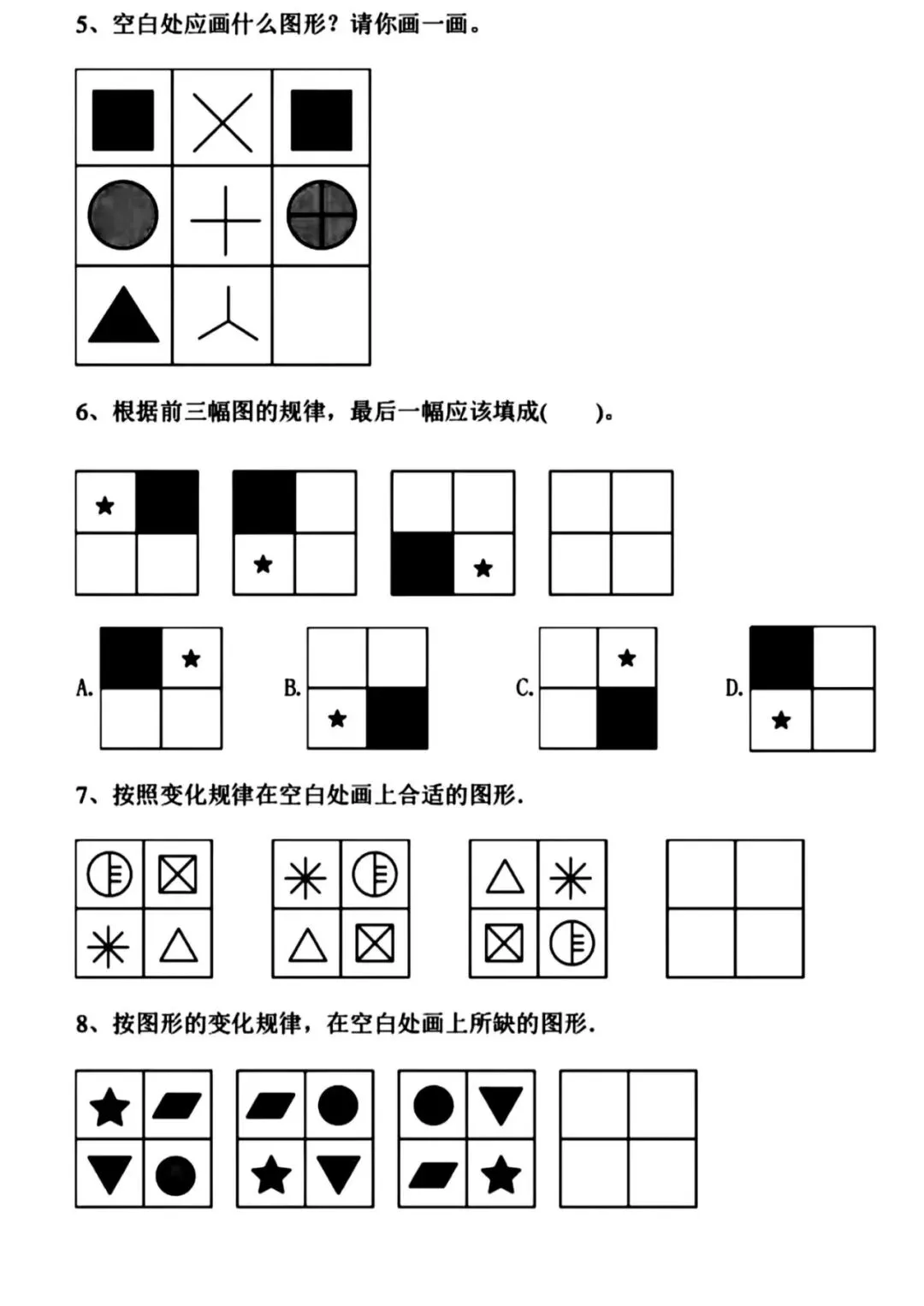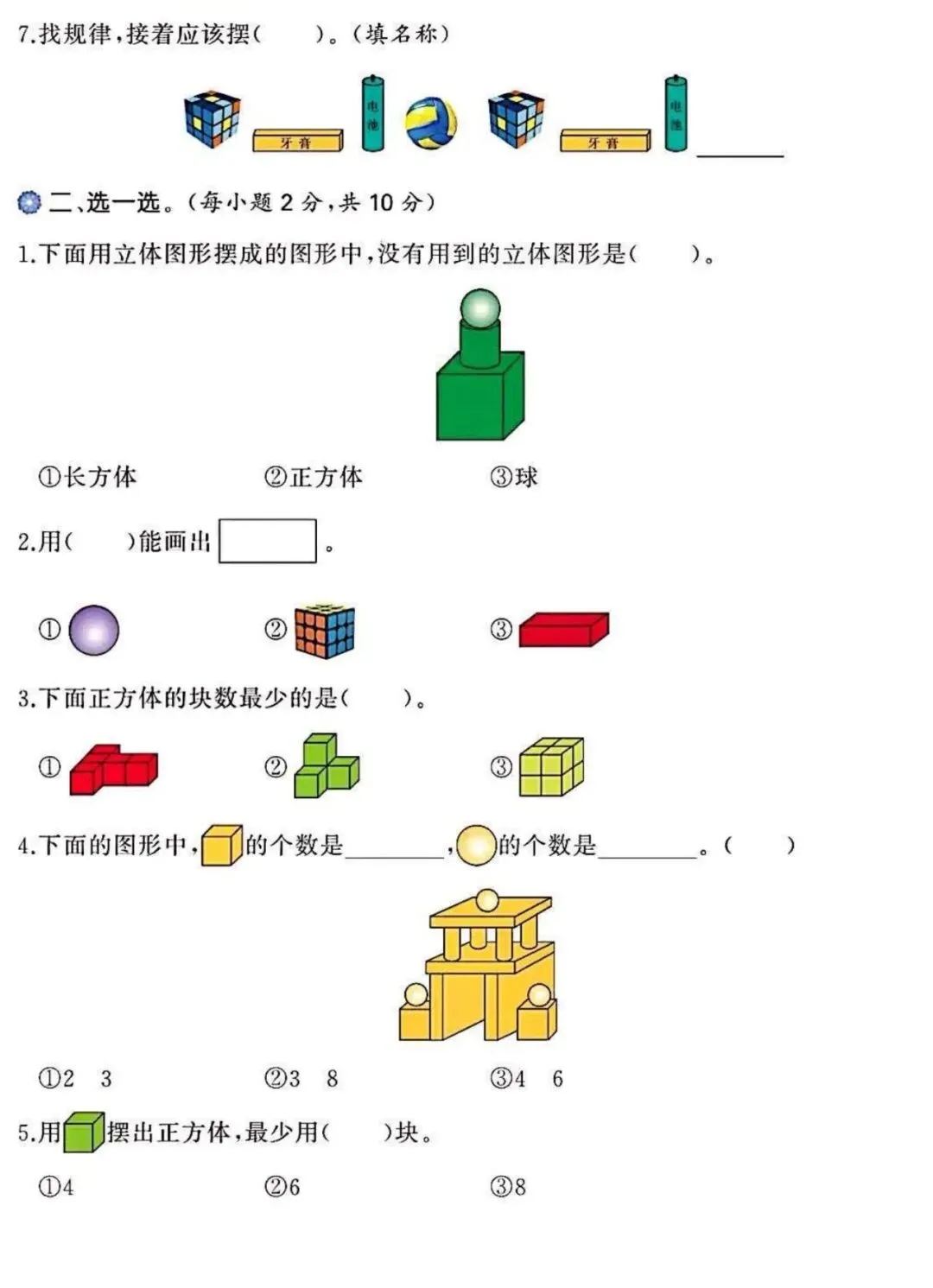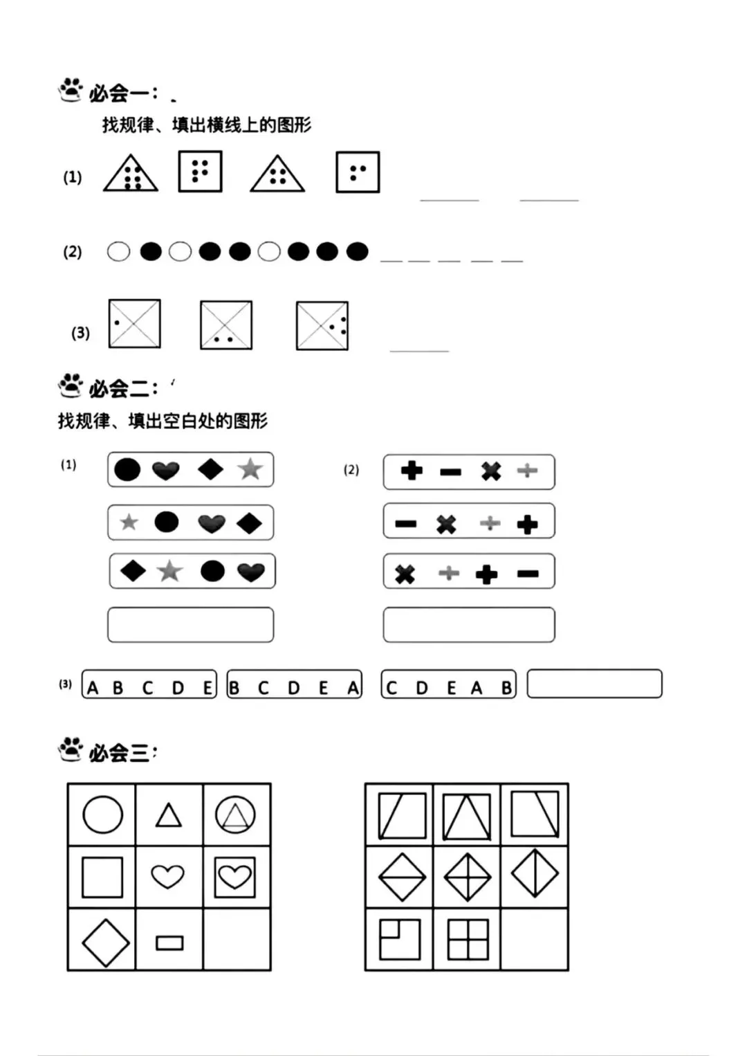 2026春一年级下册通用版数学《图形找规律+认识图形专项练习》,可打印