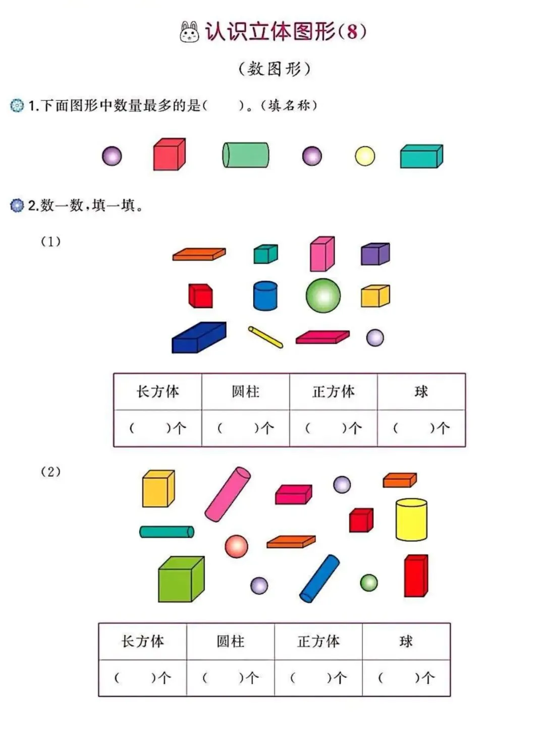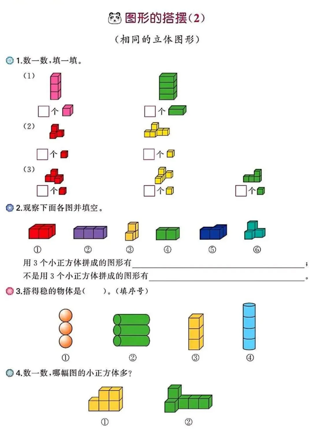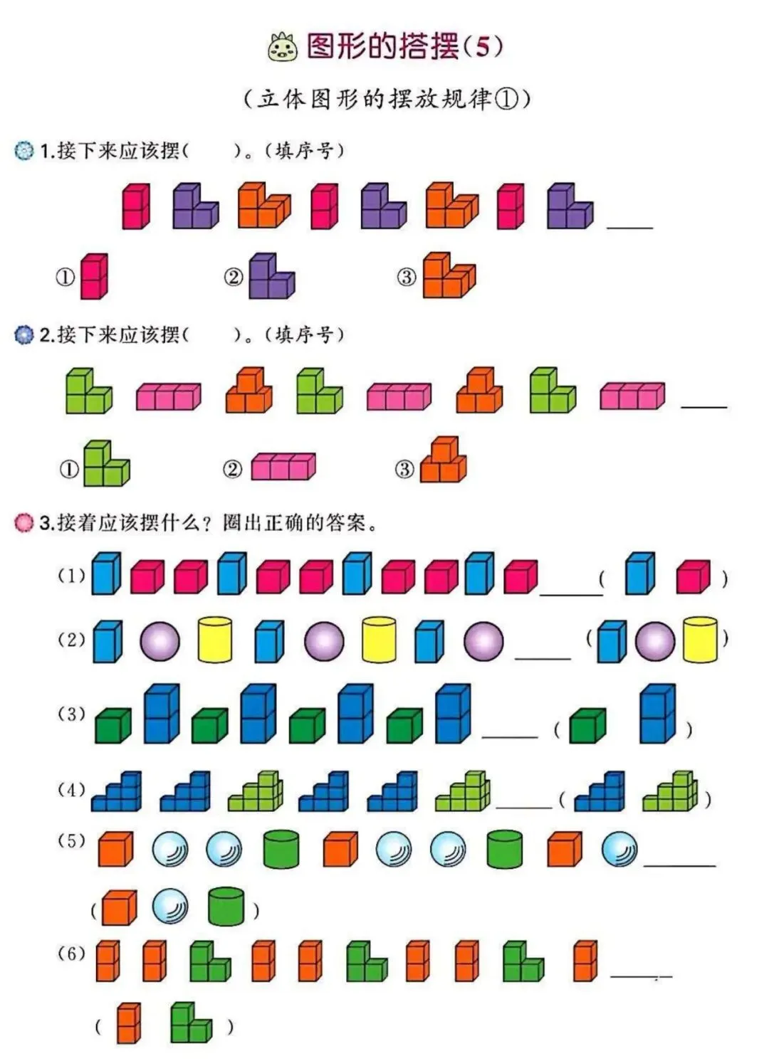 🌟2026春一年级下册通用版数学,图形找规律+认识图形专项练习,这份专项练习通过“数一数”、“连一连”帮孩子建立平面图形感,从颜色、形状变化中训练逻辑观察力。一练双效,既搞定抽象概念,又打通思维难点,需要的家长朋友抓紧领回去,给孩子练起来吧💪!
