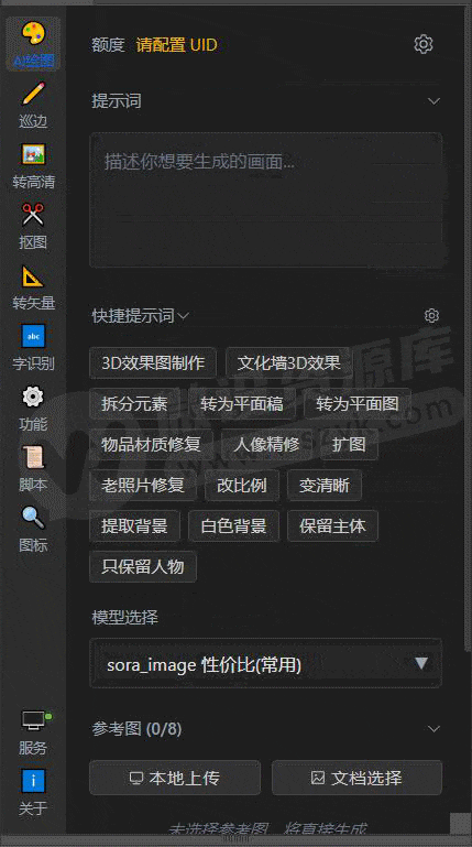 有AI绘图需求的可以自己到API平台对接密钥使用,插件开发者提供有教程,如果不需要使用AI绘图,可以忽略直接离线免费使用其它功能