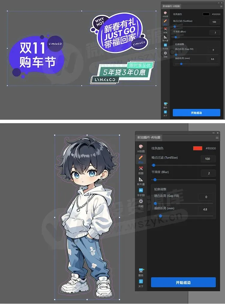 本地离线免费使用!自动识别手绘稿、扫描图、Logo 的边缘轮廓生成干净、平滑的矢量路径,省去手动钢笔工具描边