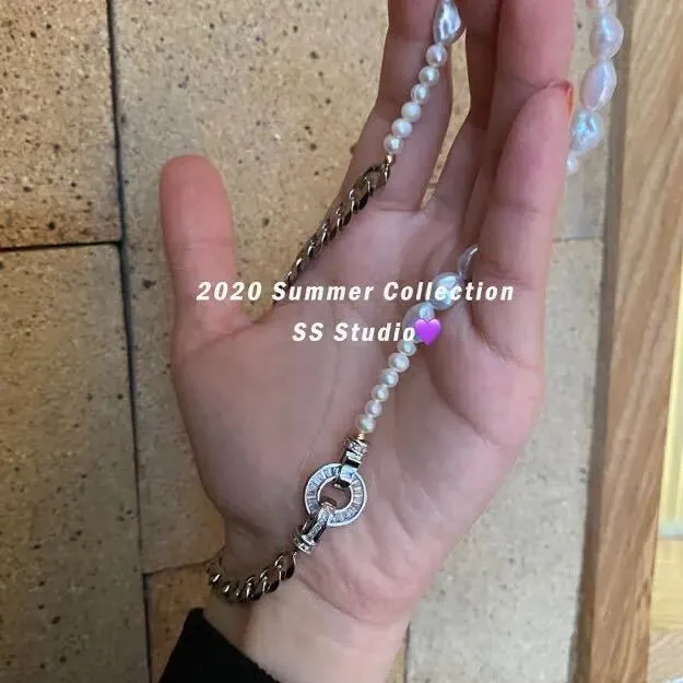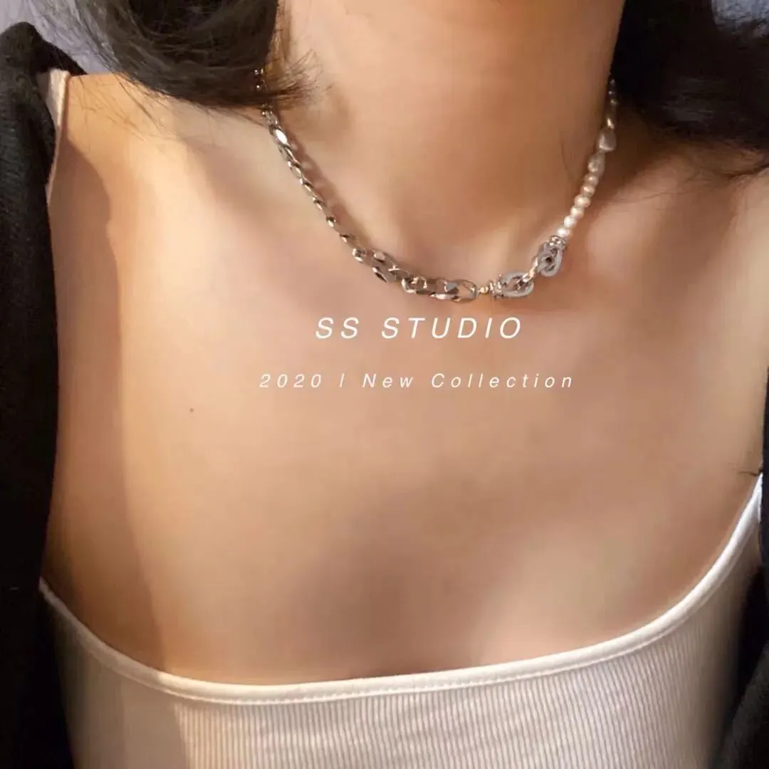 今年大热的链条风在它家也能找到。不同的是,加入了珍珠的拼接元素,更显得与众不同。摸上去质感很棒,而且项链上还镶嵌了锆石,闪闪亮亮的感觉很时髦~