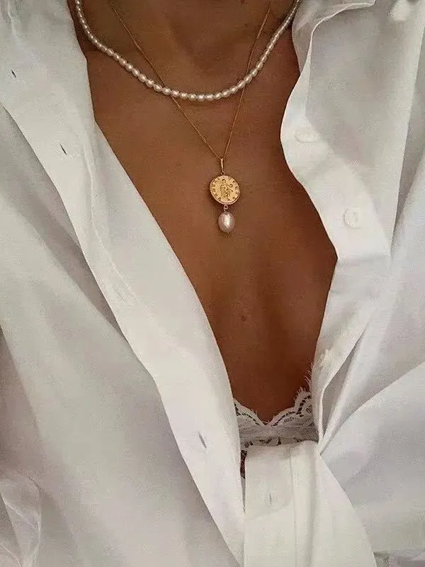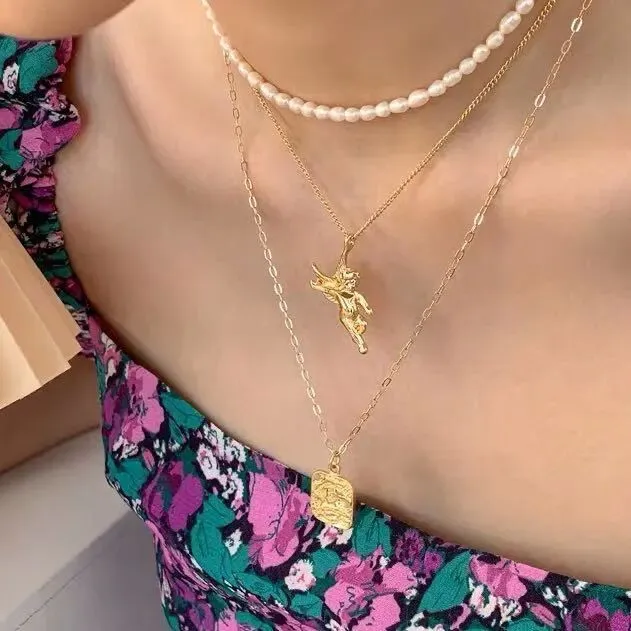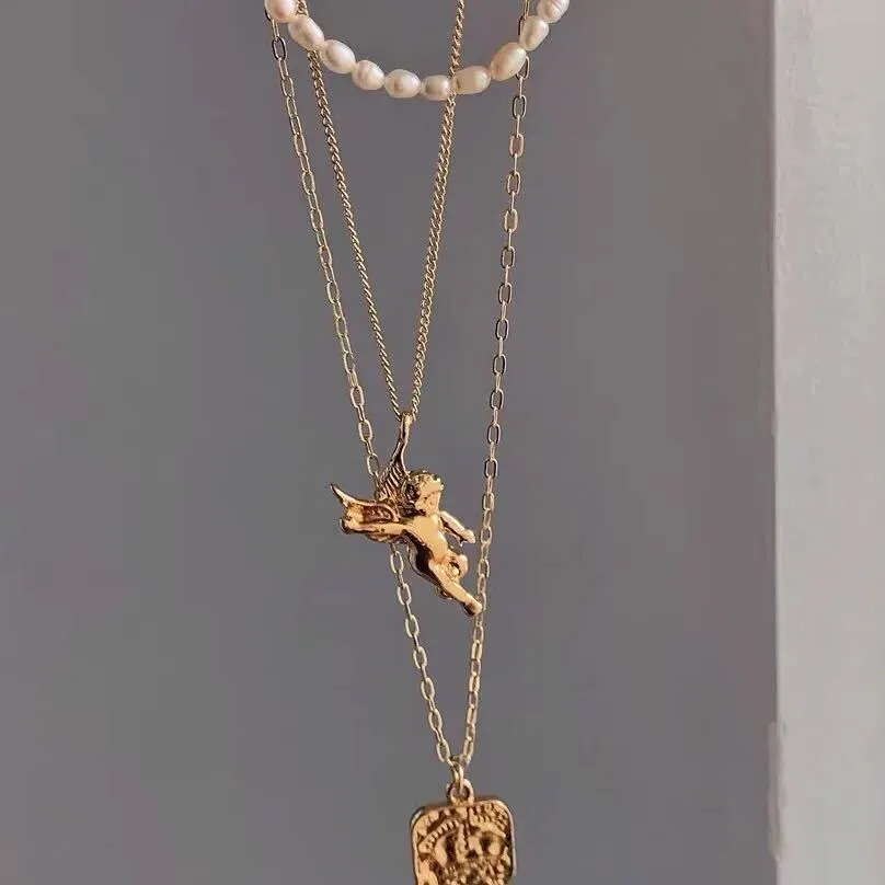 喜欢叠搭但怕自己搭配不好?直接入手这个珍珠项链三件套就OK,它都帮你选好了~萌萌的小天使、珍珠项链外加上V型链条项链,叠搭起来太洋气了~当然也可以分别和别的项链组CP,非常百搭!