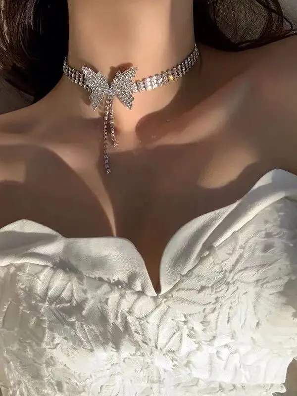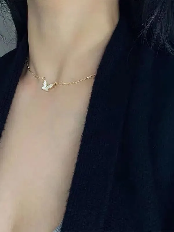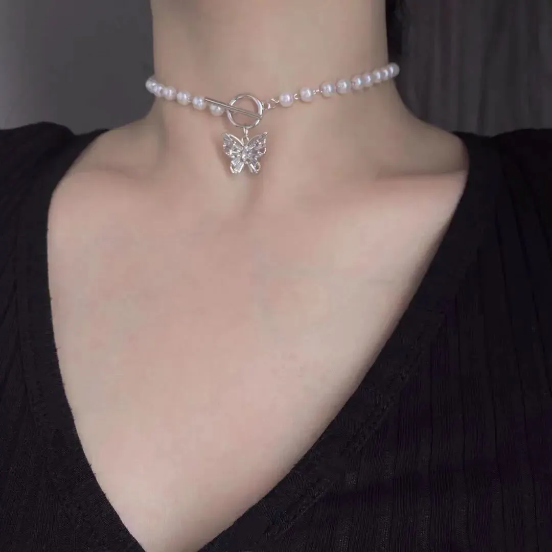 想在夏天秀秀锁骨的妹子们可以pick这款珍珠水钻蝴蝶项链。刚刚好的锁骨链,非常能凸显性感的锁骨,点缀的水钻蝴蝶也很洋气。