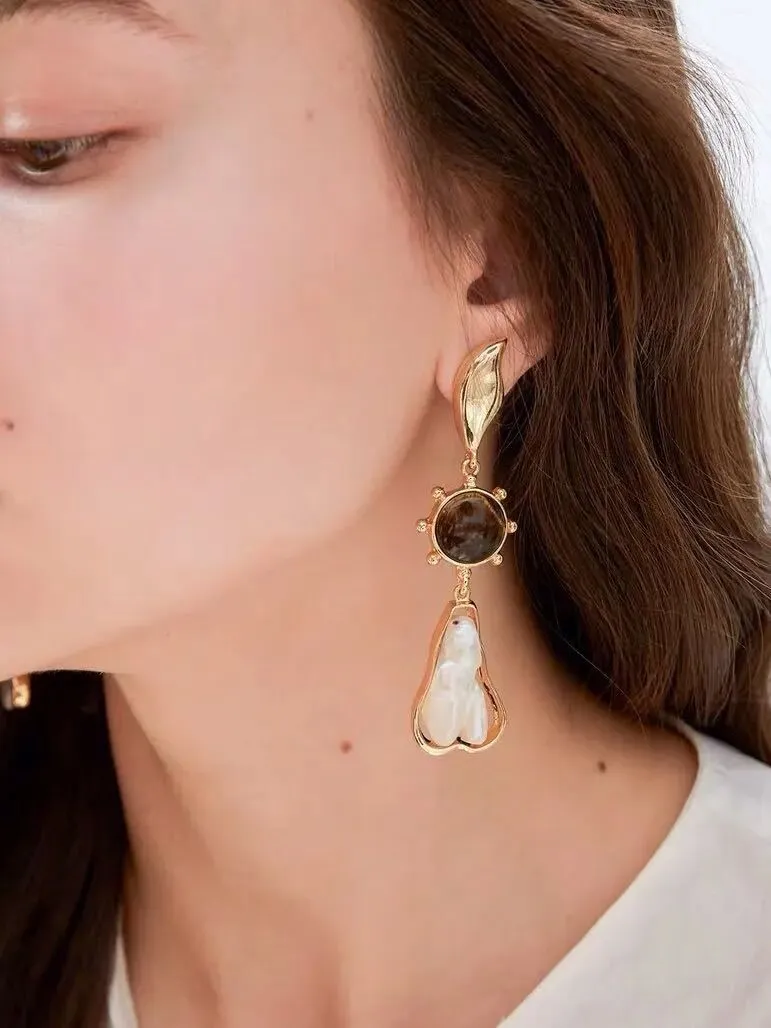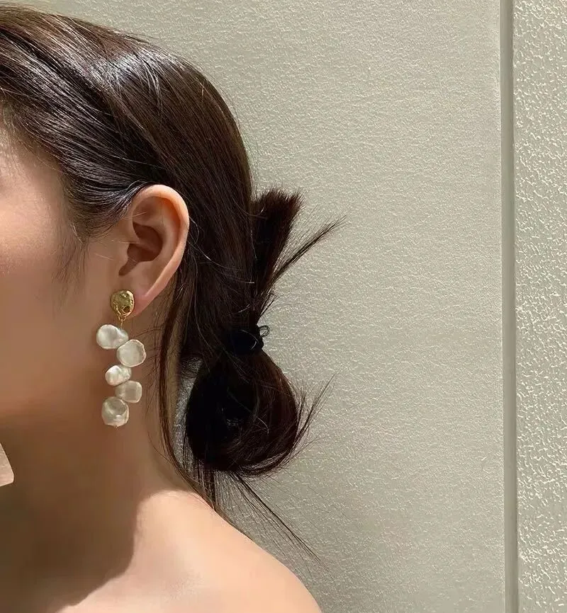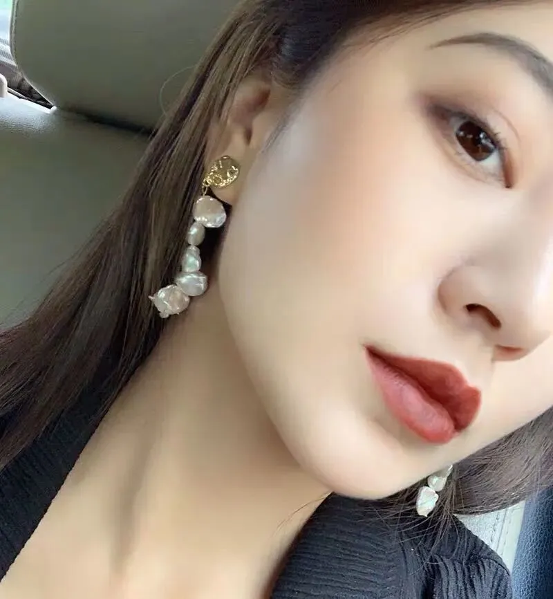 不规则的巴洛克珍珠耳环真的堪称绝美~不需要繁复的穿搭,戴上这对耳环强大的气场自然而然营造~