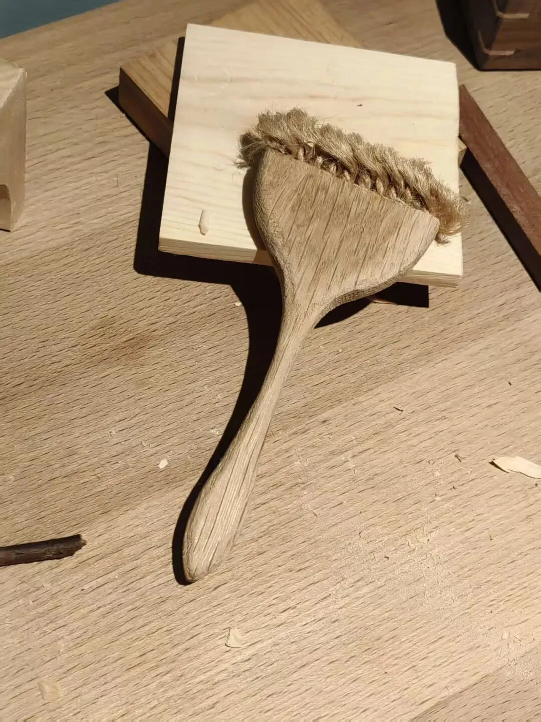 我们再会自己制作一把刷子。当你有了一套心爱、顺手的工具的时候,保持它的清洁,维护它的使用寿命就被提上日程,所以,工具包里有一把需要我们自己一缕一缕组装刷毛的刷子。用它来拂去工具、手作上的木屑、灰尘,再干干净净地将它们装进工具包休养生息。