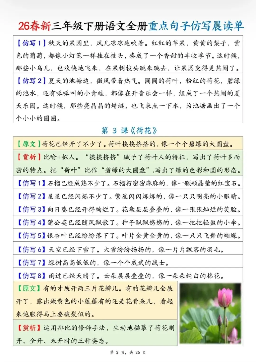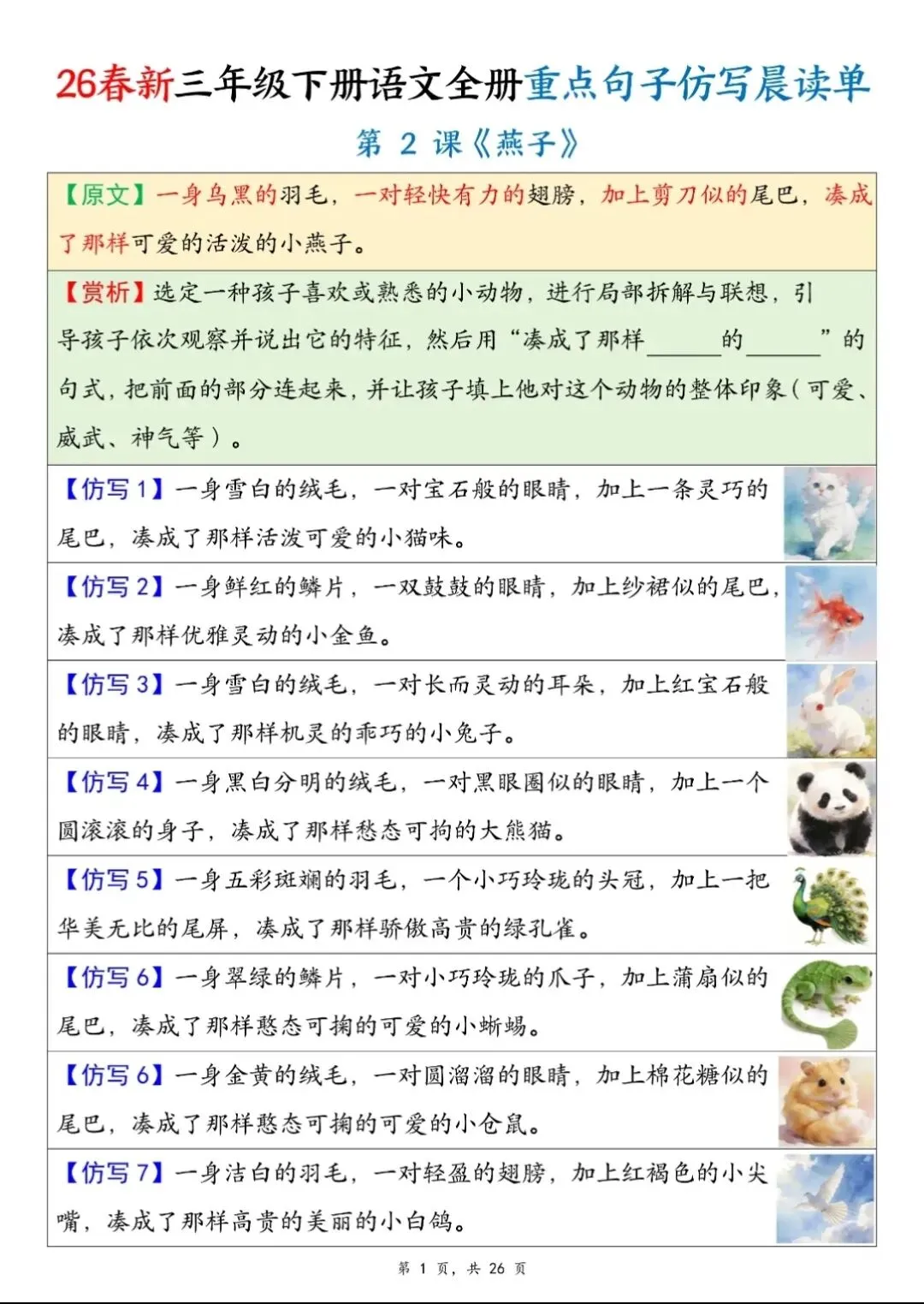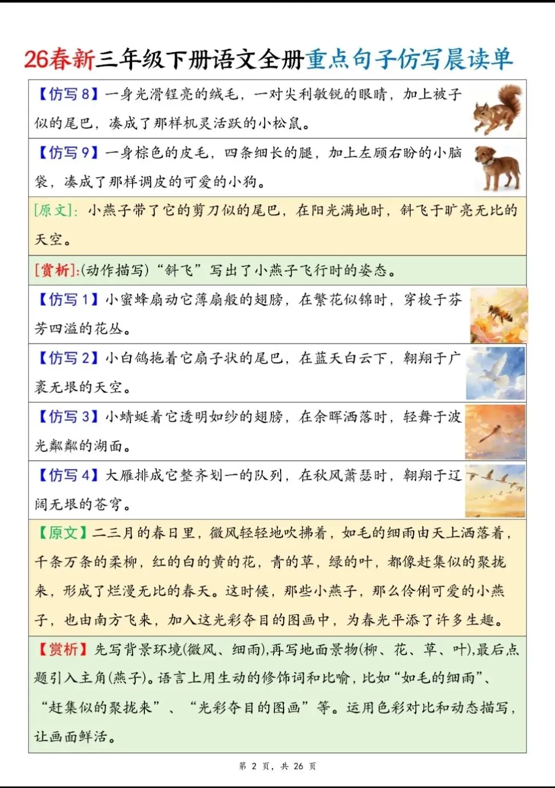 家长不用费心找素材,孩子自主积累也能进步!三年级下册语文仿写提升必备资料,赶紧给孩子安排上👍