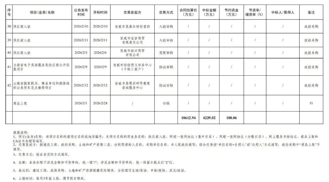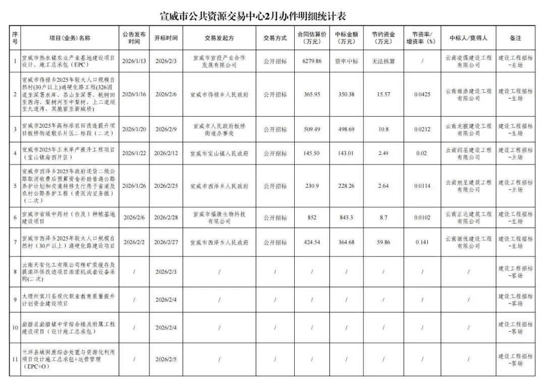 【公共资源交易】宣威市公共资源交易中心工作情况(2026年2月)