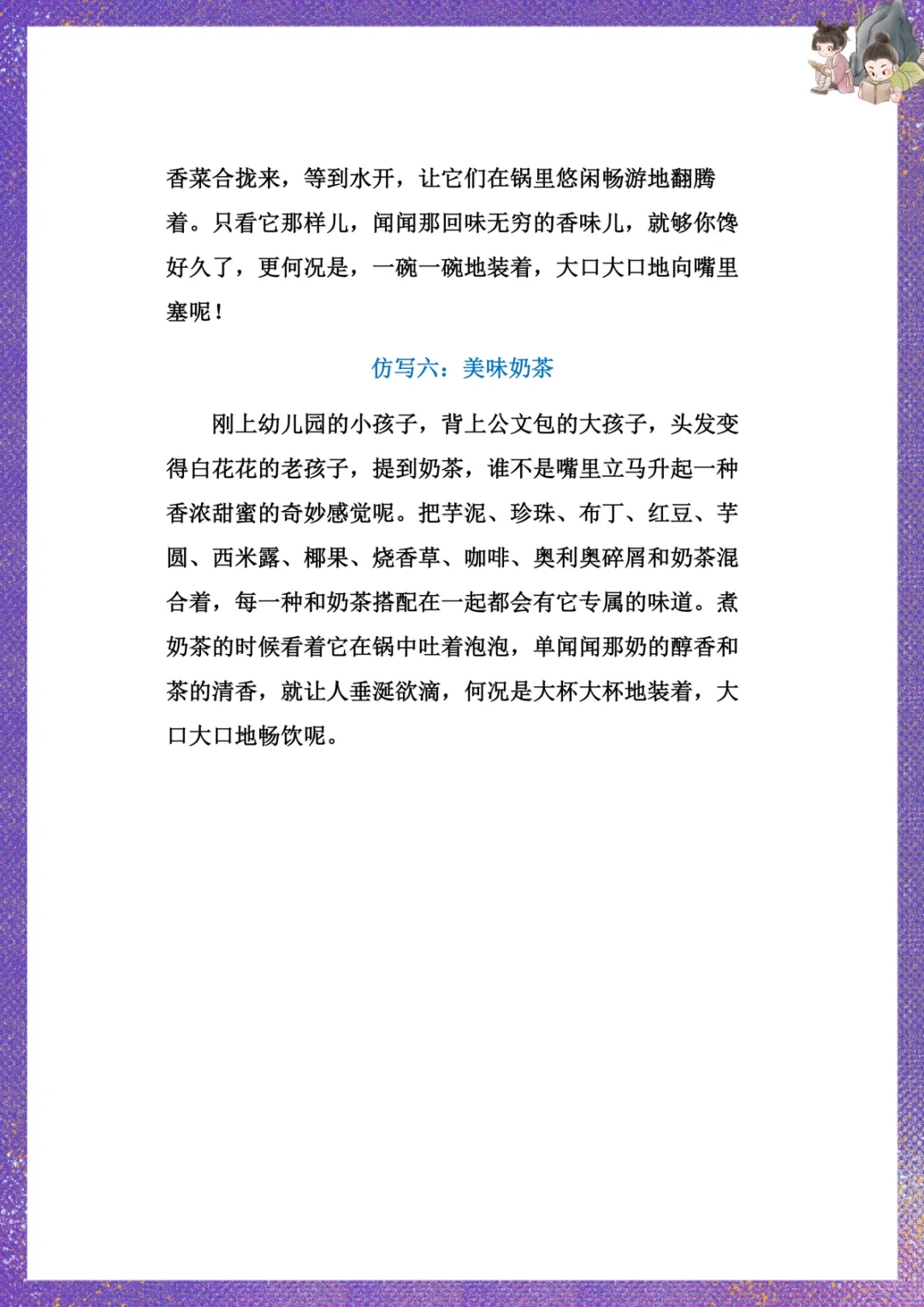 部编版六年级下册语文:第二课《腊八粥》课后小练笔范文 电子版可下载打印