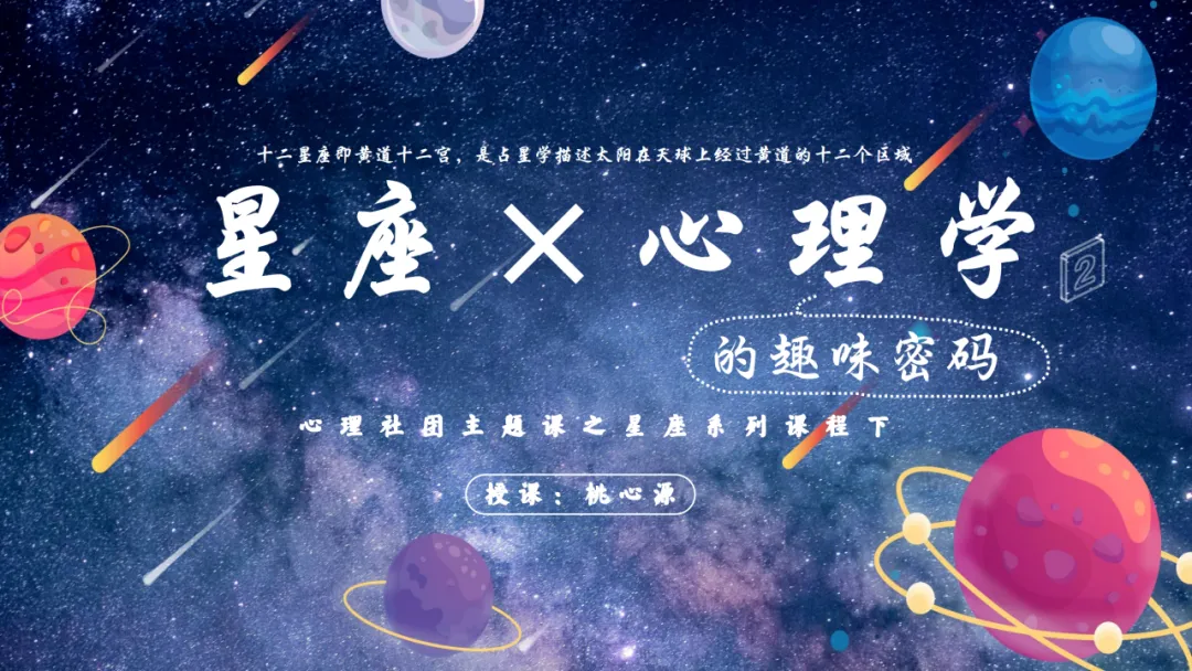 在学生心里,心理老师成了无所不能的存在,有的学生甚至好奇算命是怎么回事。那么来一节十二星座吧,娱乐与知识并存,相信学生会喜欢这样的形式。(点击文字或者图片跳转进入课程)