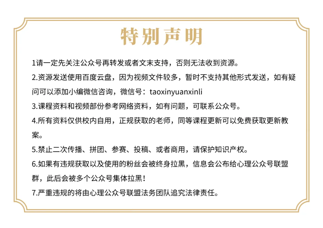 之前已经购买全年课程的宝子,所有新增、更新内容均免费升级(查购入记录,且无心理公众号联盟公布的违规记录),无需额外付费!