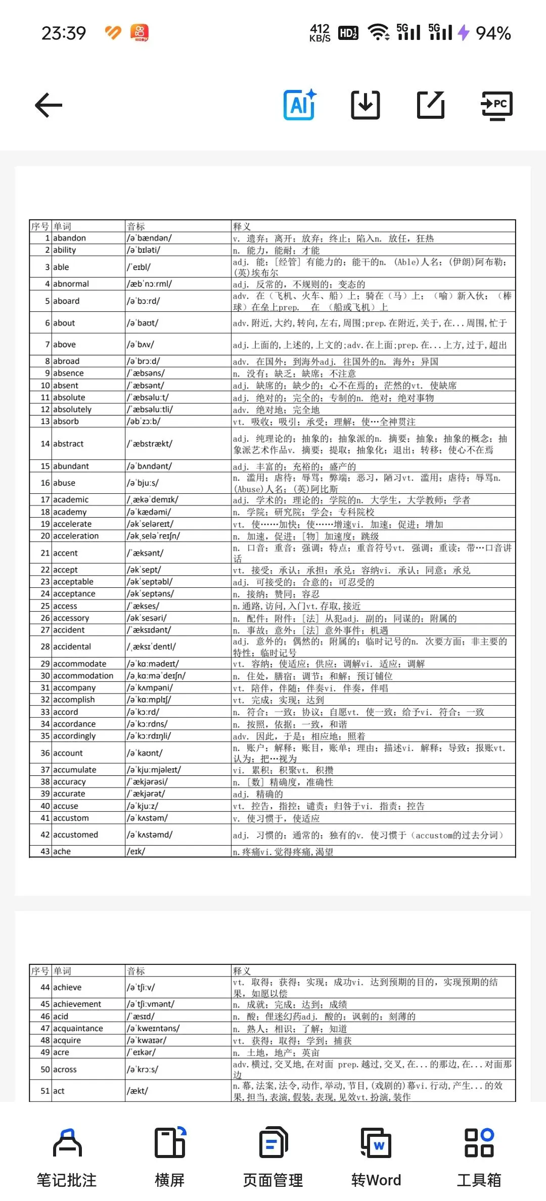 2026年英语四级大纲词汇表4500个完整版,PDF电子版,可下载打印,包含内容: