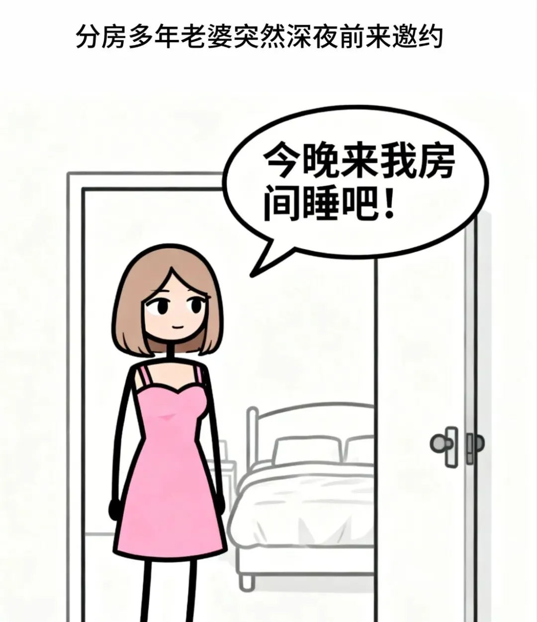 趣味漫画:分房睡很多年,今晚老婆突然说:今晚来我房间睡吧!