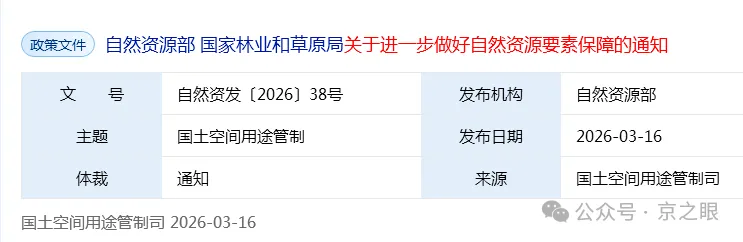 《自然资源部、国家林业和草原局关于进一步做好自然资源要素保障的通知》(自然资发〔2026〕38号,下称《通知》或38号文)3月16日正式发布。