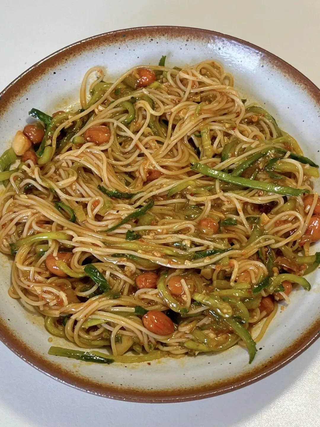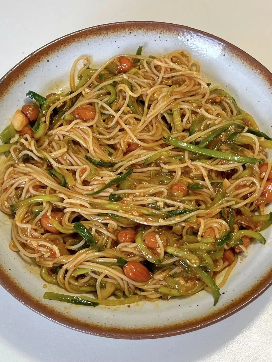 夹一筷子就能闻到香味,入口是酸甜带点辣的味道,面条筋道爽滑,黄瓜清爽解腻,花生米越嚼越香,真的超好吃。