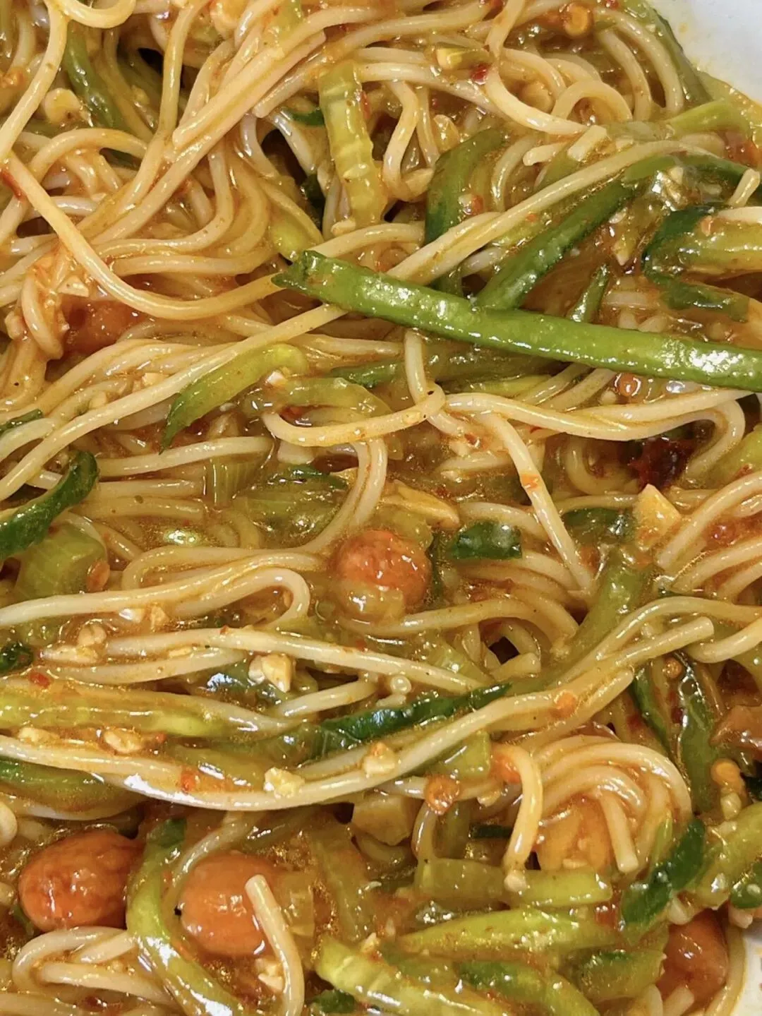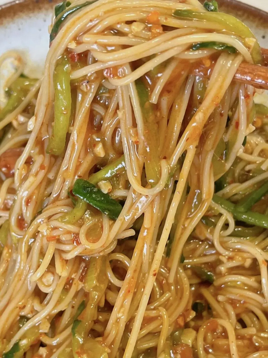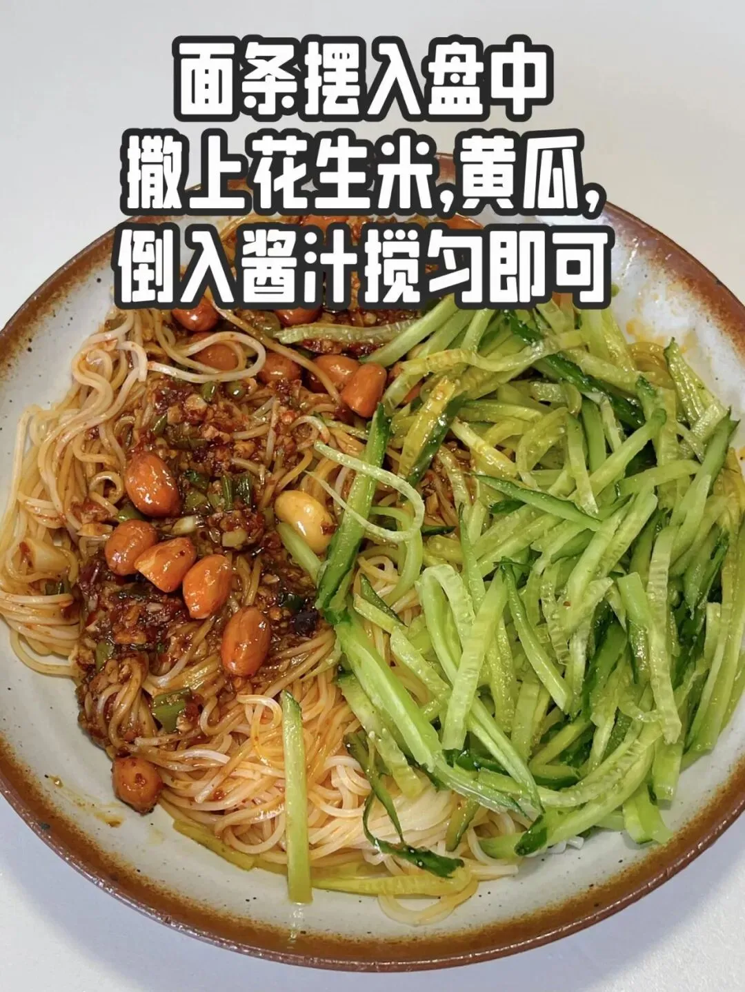 每一根面条都裹满了酱汁,混着脆生生的黄瓜和香酥的花生米,光看着就流口水了。
