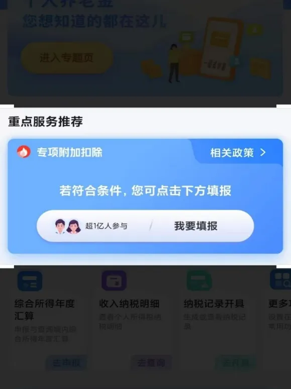 同时在这里,您可以快速前往专项附加扣除等重点功能,也可以把最常使用的功能添加到下方。