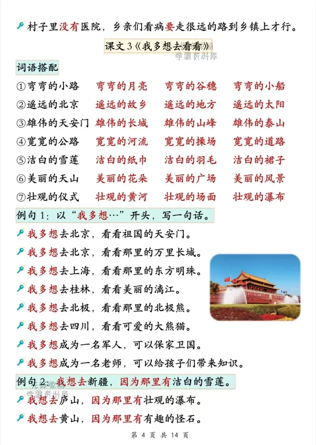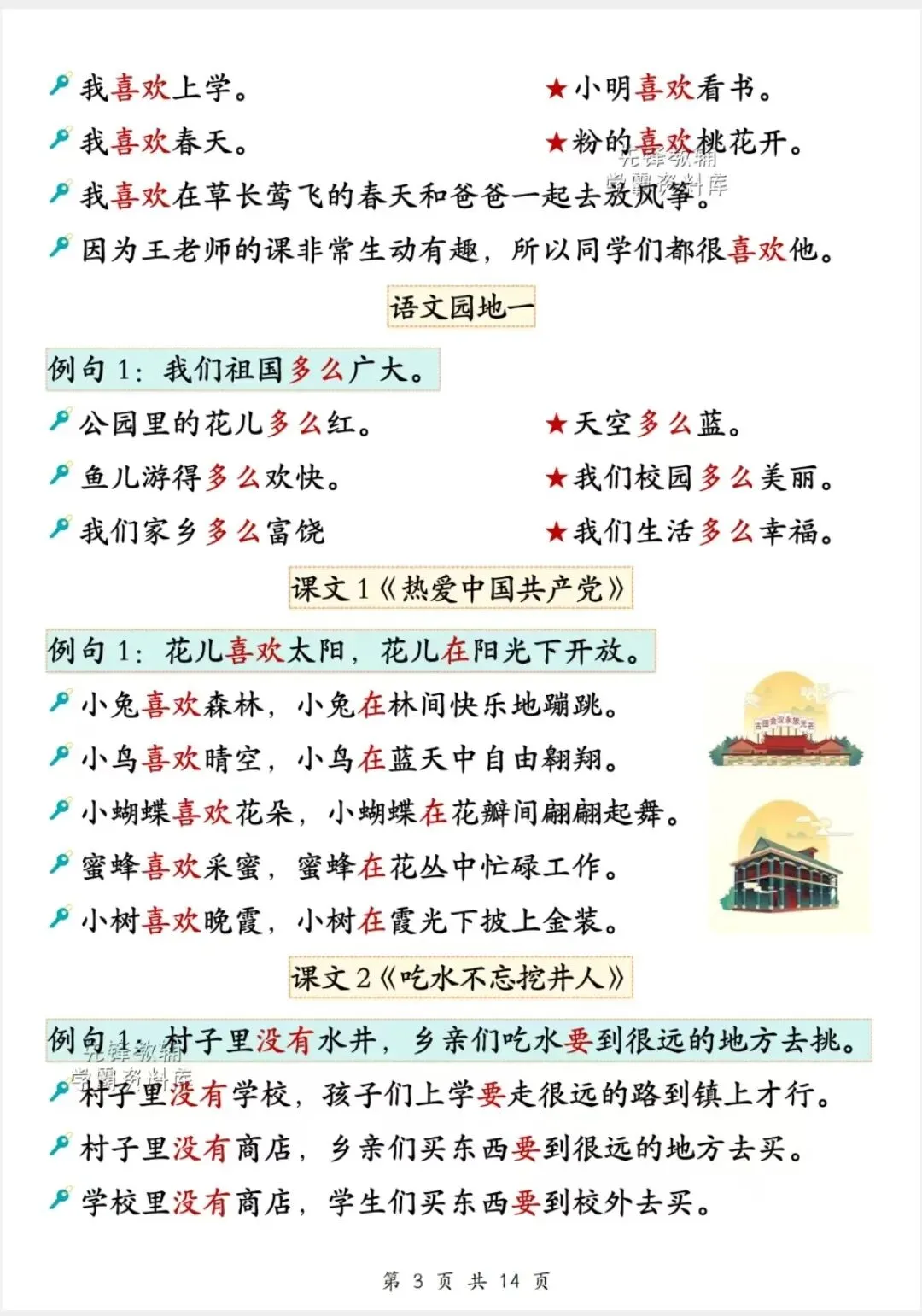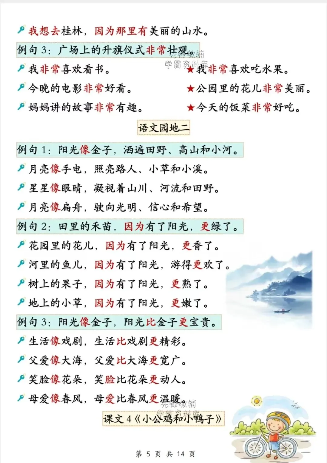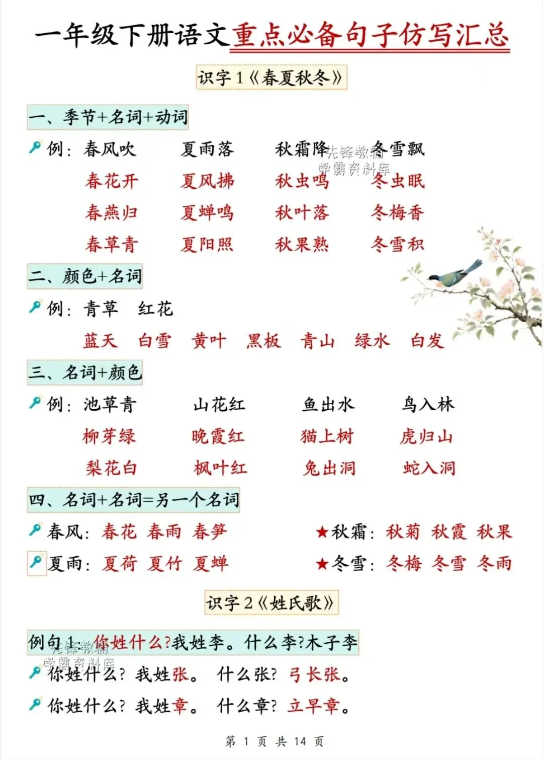 一年级下册语文重点必备句子仿写汇总电子版可打印