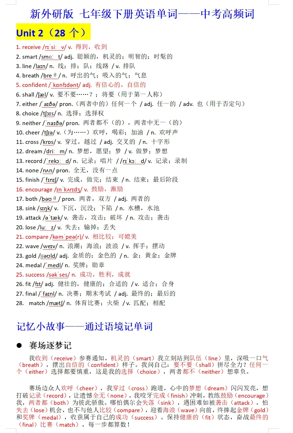 2026春新版外研版英语7年级下册电子课本电子教材单词表详解版