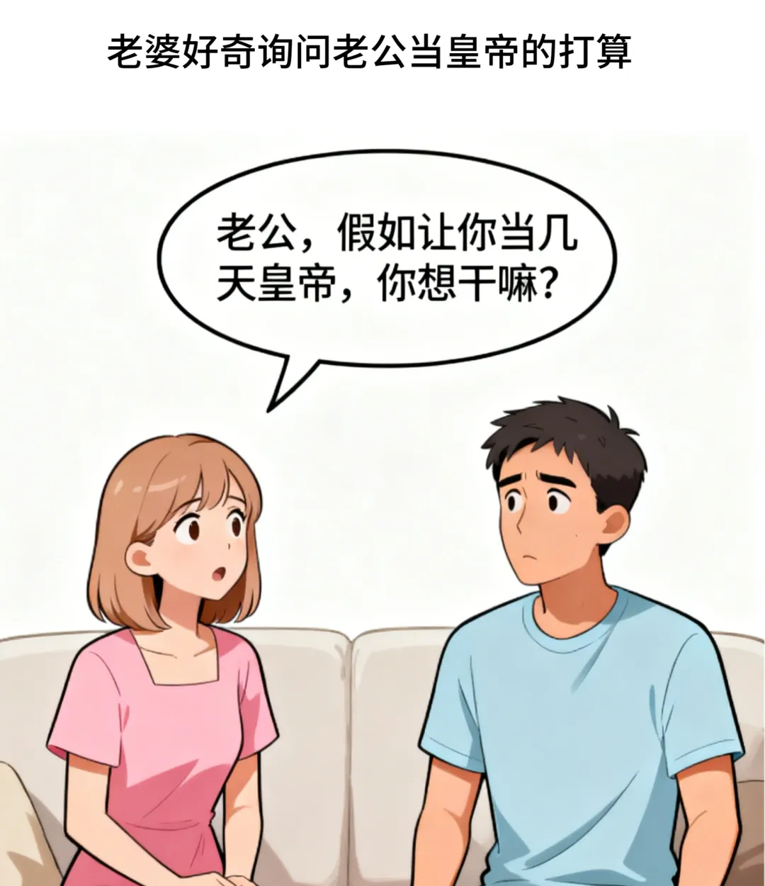 趣味漫画:老婆问:让你当几天皇帝想干嘛?老公:先把你打入冷宫!老婆:我当太后,你也得听我的.老公秒怂:我当太监伺候你.