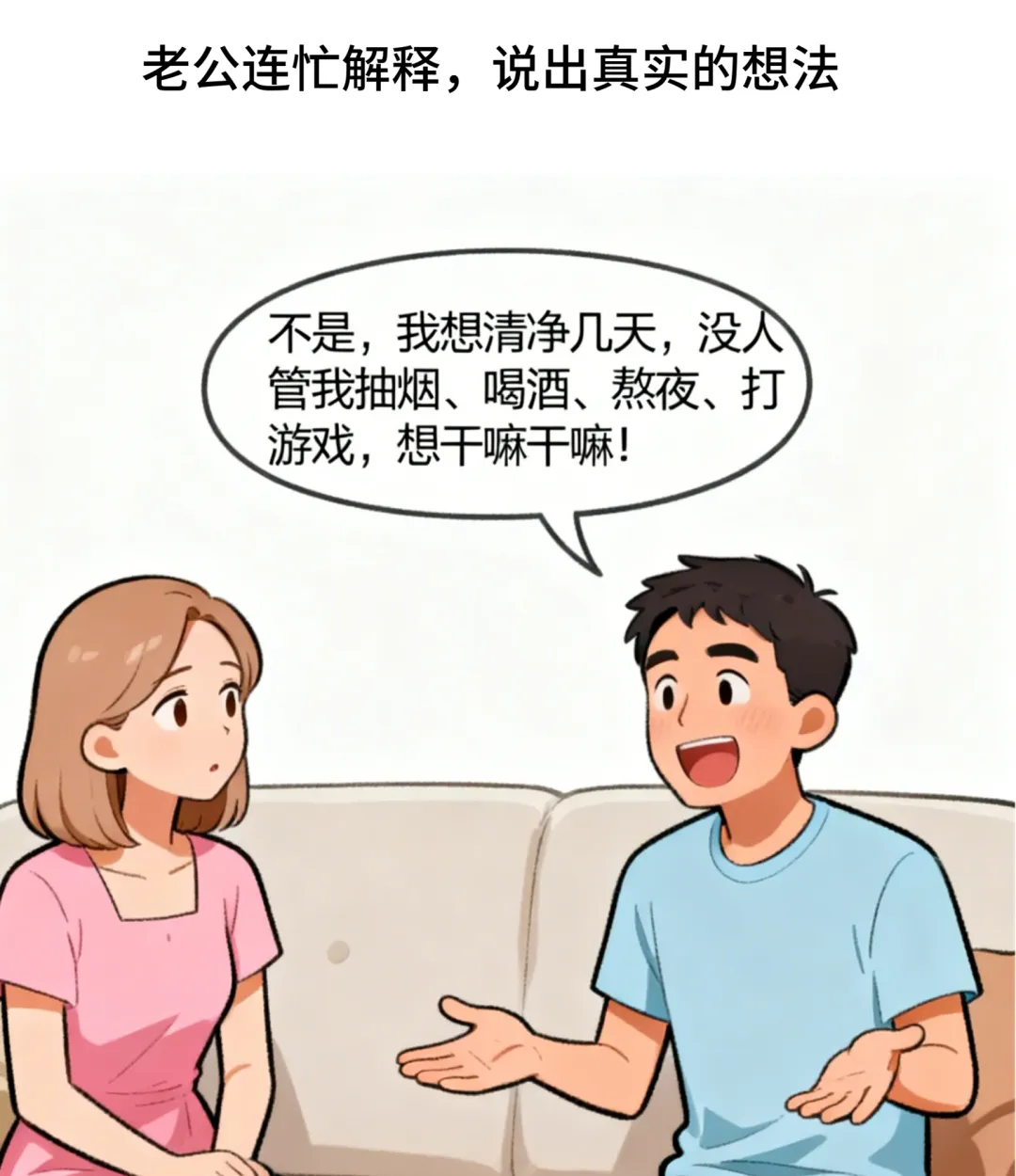 老公:“不是,我想清净几天,没人管我抽烟、喝酒、熬夜、打游戏,想干嘛干嘛!”