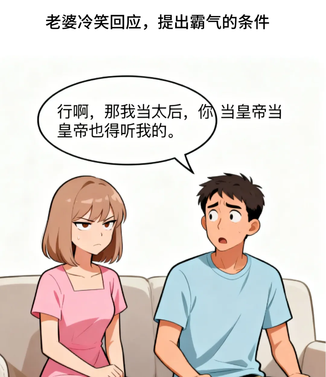 老婆冷笑:“行啊,那我当太后,你当皇帝也得听我的。”