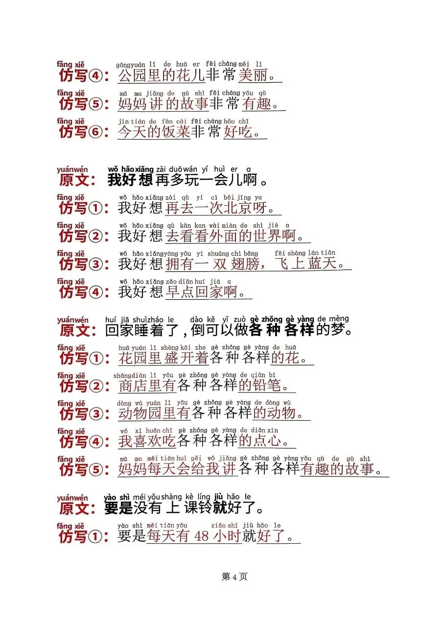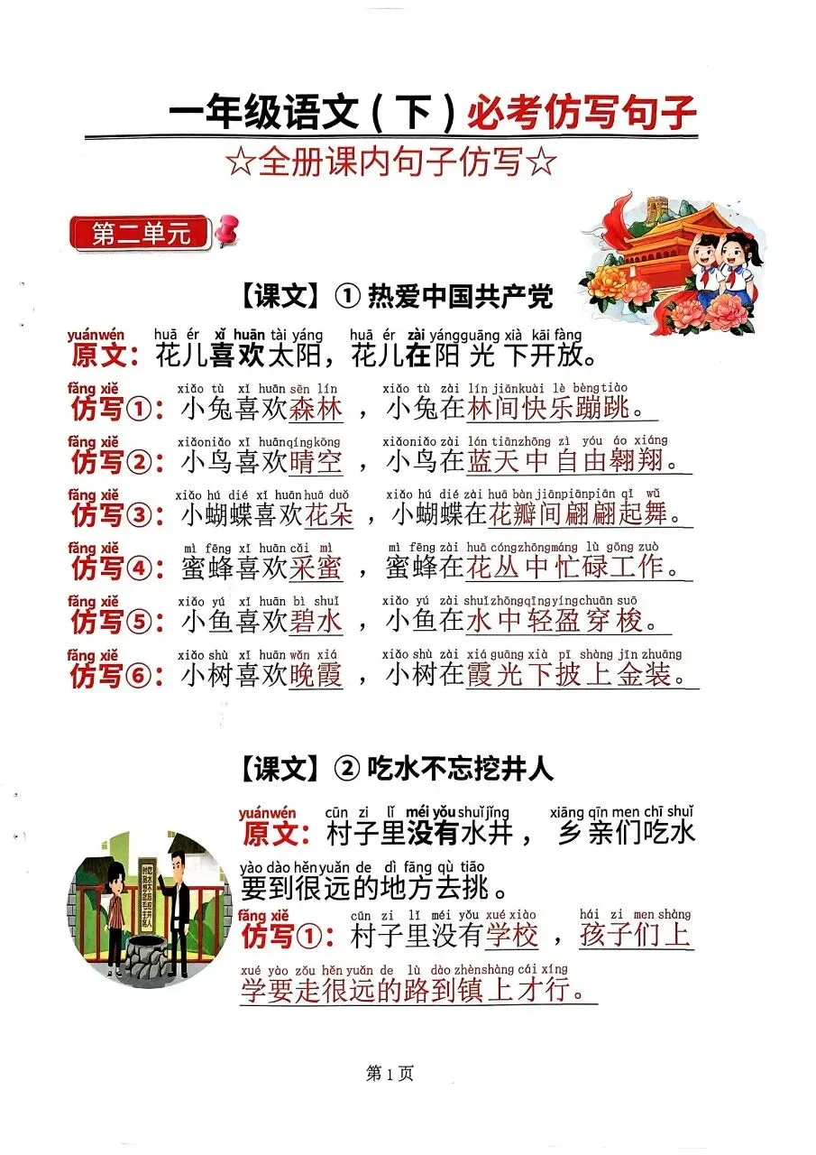一年级语文(下)必考仿写句子电子版免费下载!