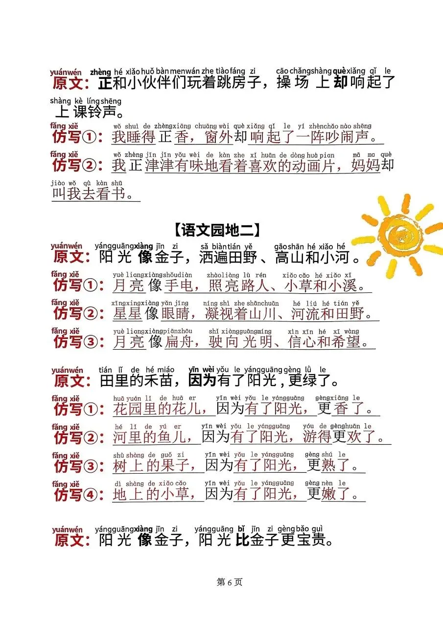 一年级语文(下)必考仿写句子电子版免费领取