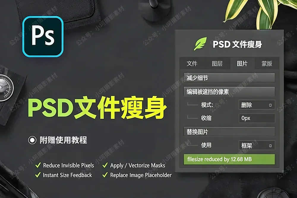 【1072】Adobe再出新神器!PSD文件瘦身插件中文汉化版来了,减轻你的PS负担