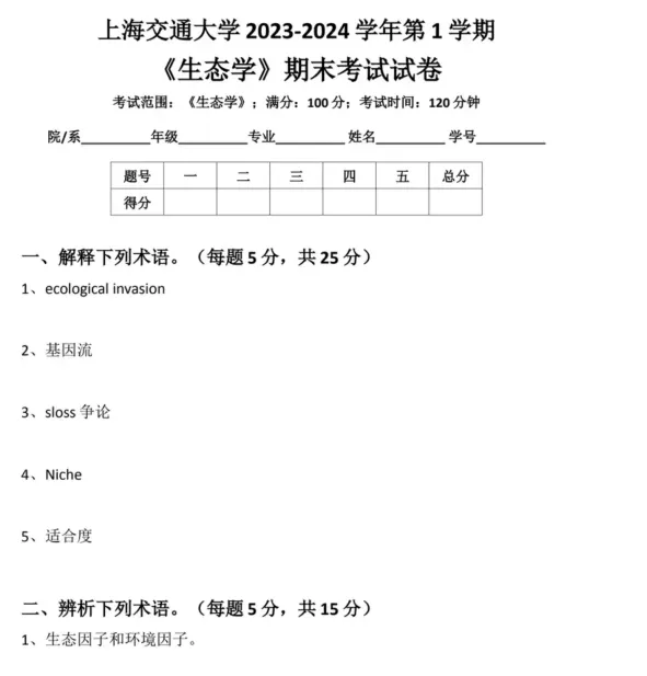 上海交通大学生态学期末试题,可打印 获取更多考研资料可加小编QQ:3542263029或者v信kyzlfx 先点“赞+在看”联系客服即可免费赠送公共课(政治英语数学)资料 其他院校陆续更新中…….有需要联系客服留言即可 更多真题资料会第一时间为大家推送 还有其他年份,可联系客服详询 01 部分截图如下🔥 温馨服务 免责申明:资料整理于网络如有侵权请告知删除 长按并识别下方二维码关注公众号,不定时发放考研福利哦 扫一扫添加微信好友,获取更多考研信息哦~