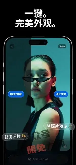 【Photo CamAI:AI照片编辑器】一款由AI驱动的照片编辑器,AI会分析光线、色彩、主体和场景,并自动应用最合适的增强效果。目前软件正在内购限免,获取时注意确认价格,手慢无!(经测试需魔法)