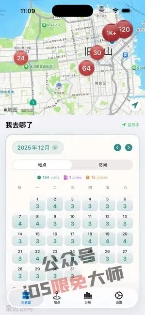 【我去哪了?】一款自动记录去过地点的应用,可按日历展示清晰行程,并支持自定义分类、区域分组和批量管理。目前软件大部份内购正在限免,获取时注意确认价格,手慢无!