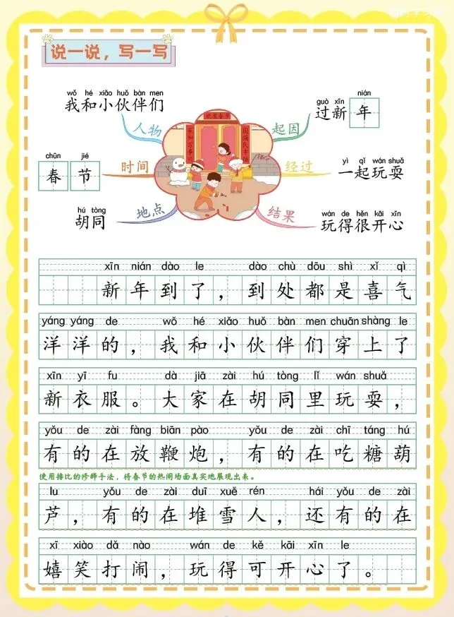 今天给大家分享的是2026年一年级语文《看图写话思维导图》电子版可打印!