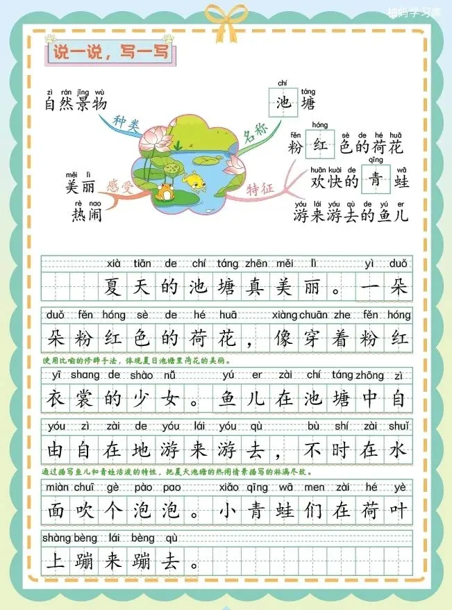 低年级正是写作思维打基础的关键期,这套资料不只是教写句子,更能帮孩子学会观察、梳理逻辑,实现从 “不会写” 到 “写得好” 的思维拔高,轻松搞定看图写话难题,娃写作越练越顺手~