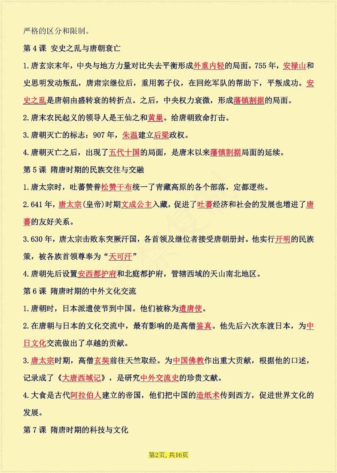 今天老师给大家整理了:七年级下册历史核心必背知识点总(电子版可打印)