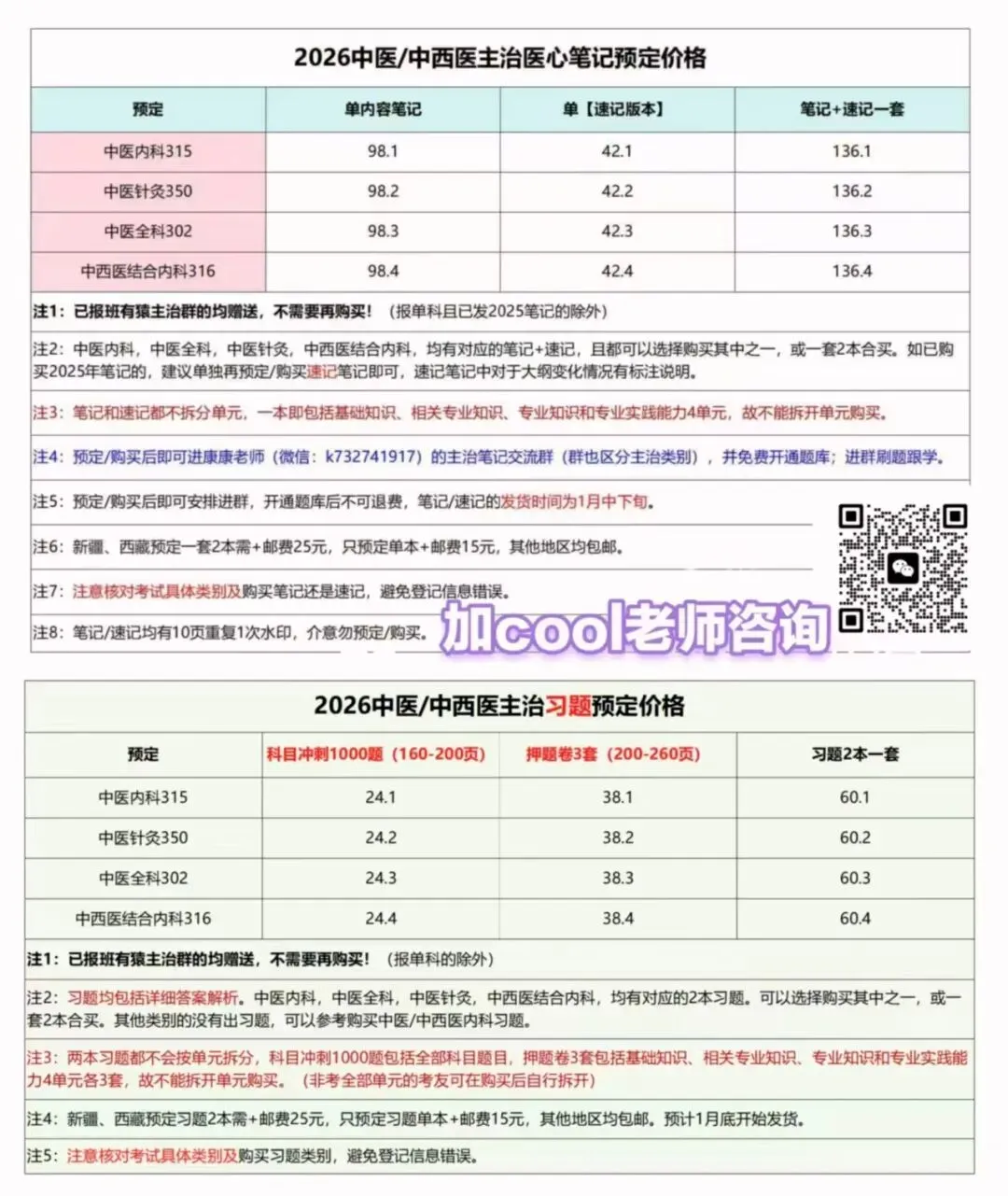类别有中内、针灸、全科、中西医内科,其他类别可参考公共科目,中下旬发货,全套含笔记➕速记两本,购买全套或单买都可进康康老师主治带班群及免费开通APP题库,需要笔记、视频的可以微信咨询。