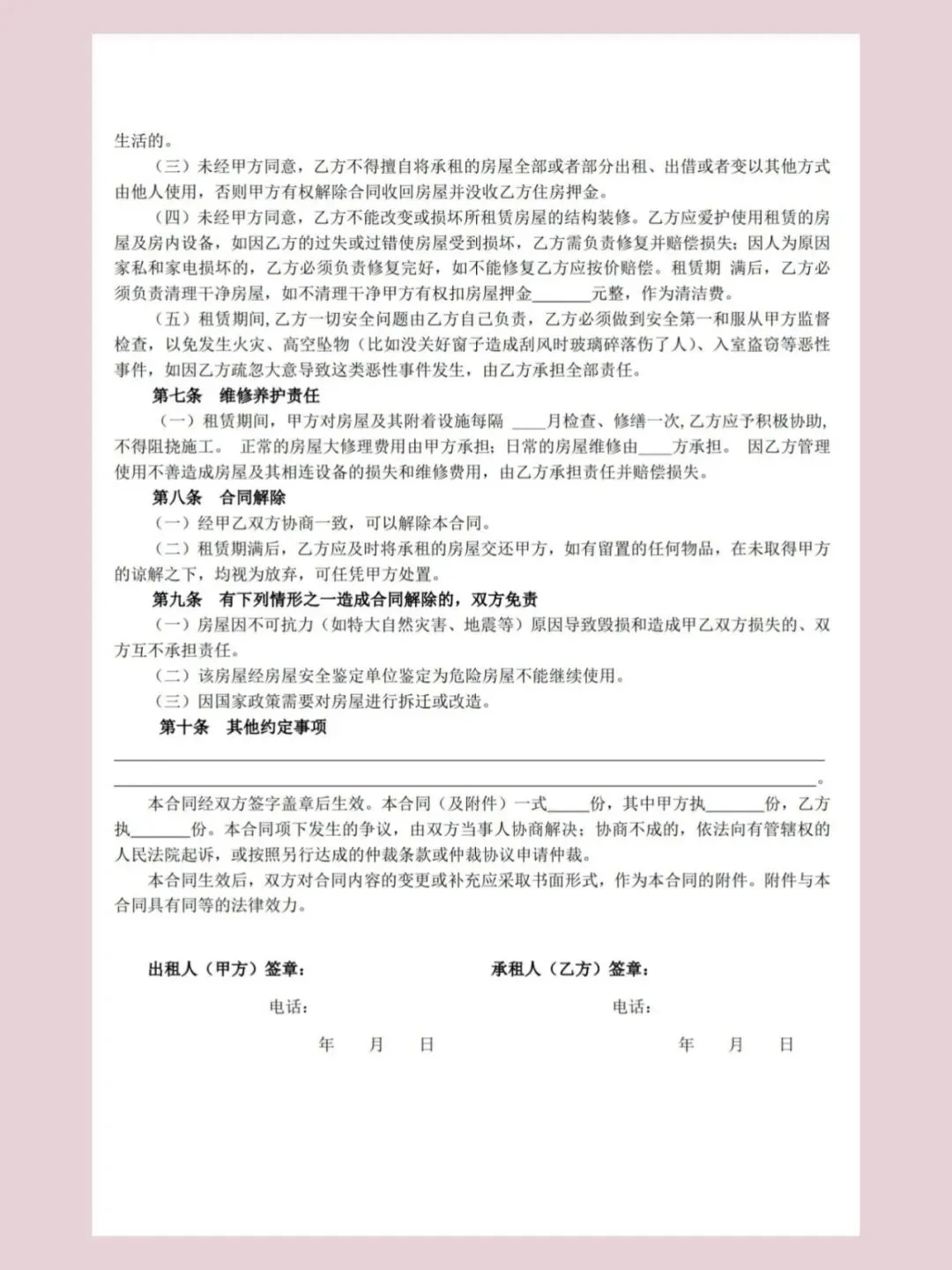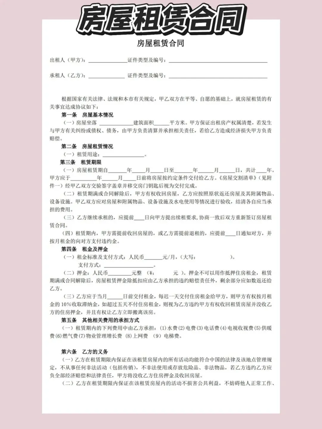 房屋租赁合同模版(电子版)