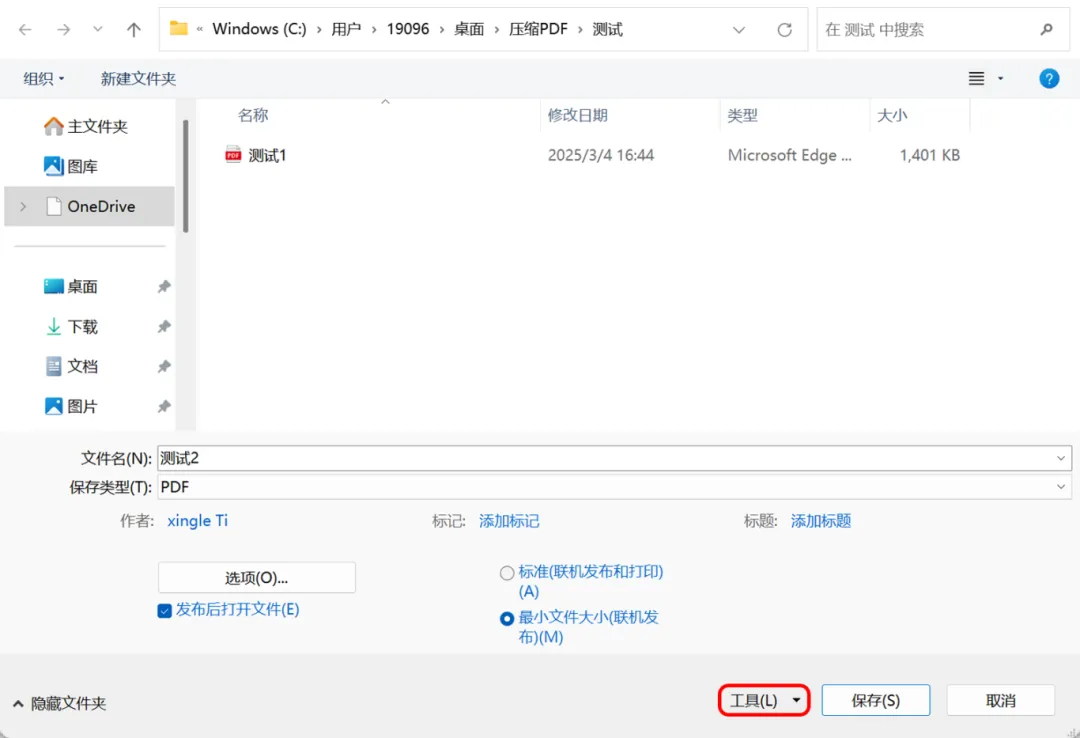 选择完成后,我们继续使用【最小文件大小】保存并导出PDF文件。