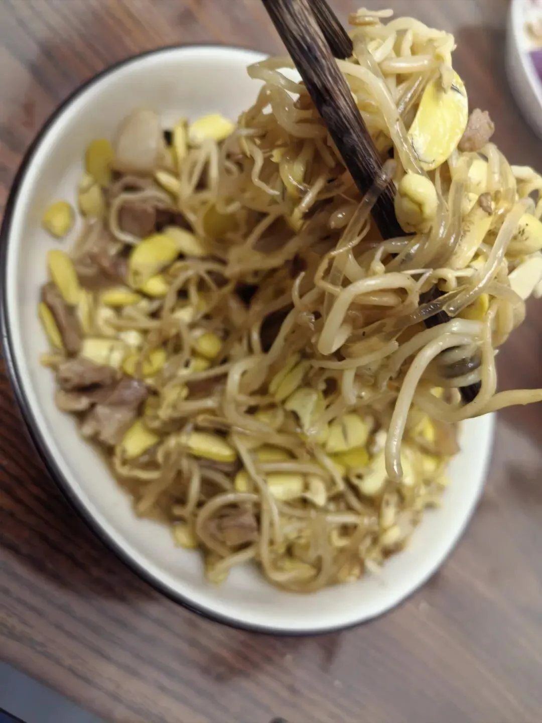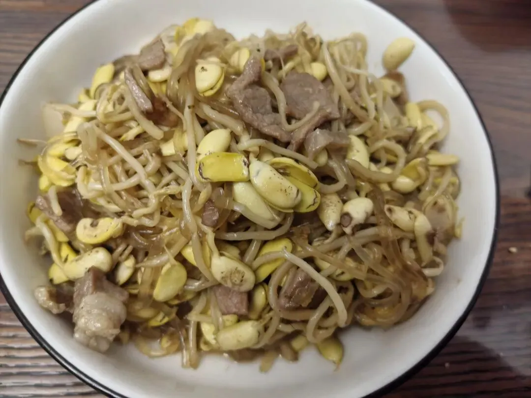 自己生的豆芽干净放心,口感脆嫩多汁,怎么做都好吃,家里孩子最爱的就是豆芽粉条炒猪肉,每次都光盘。