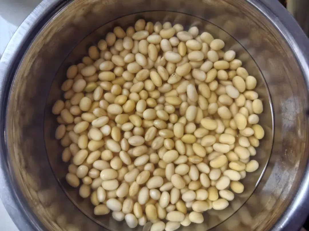 1. 一把黄豆洗净,用清水浸泡8-10小时,直到豆子完全胀大、没有皱皮。
