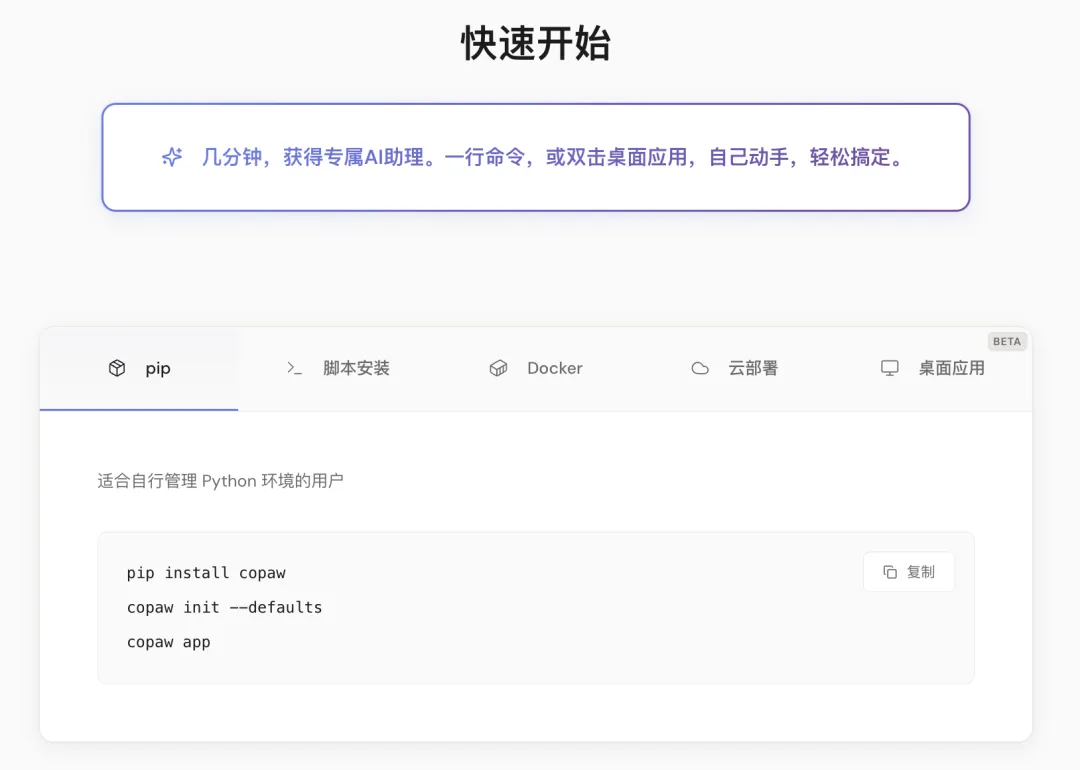 CoPaw是阿里云通义实验室重磅推出的个人智能体工作台,兼顾灵活性与实用性,可自由部署于本地或云端,支持通过钉钉、飞书、QQ、Discord等多渠道对话交互,还能按配置定时自动执行各类任务,无需手动干预。