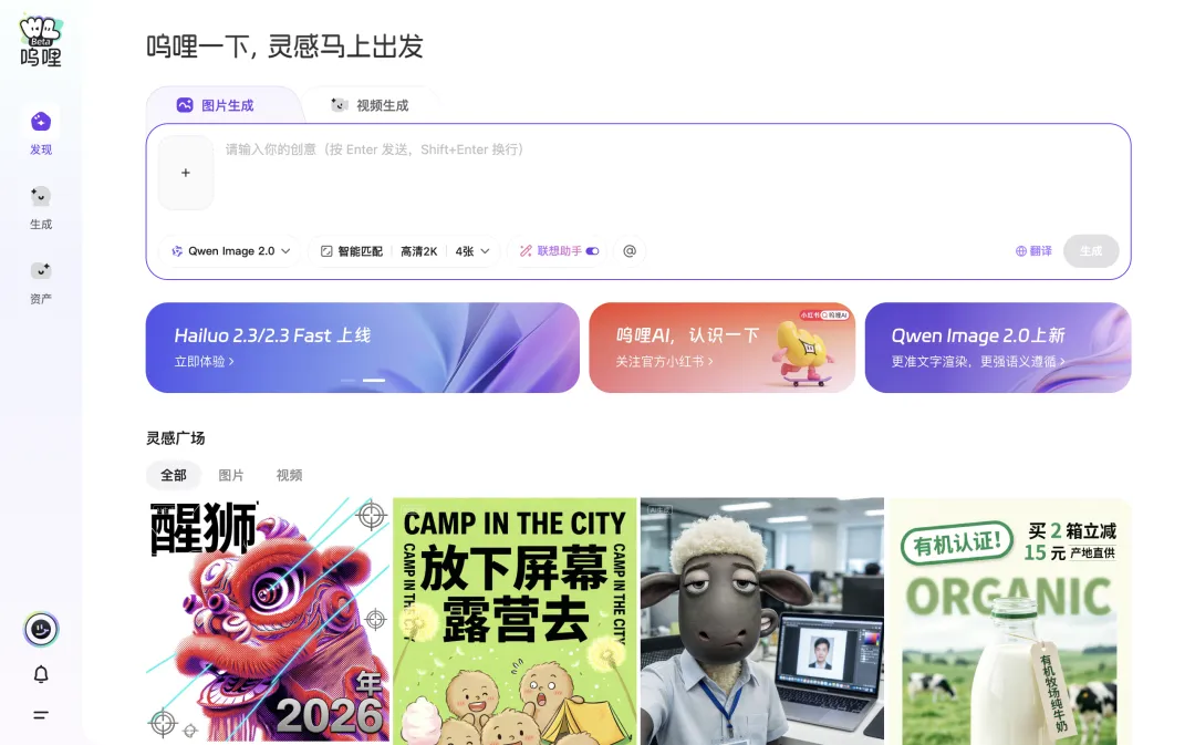 呜哩是阿里巴巴推出的一站式AIGC创意生产力平台,依托通义千问团队自研的多款顶尖AI图像与视频模型打造——Qwen Image 25.12负责高精度图像生成、Qwen Image Turbo实现极速出图、Qwen Image 25.11支持智能图像编辑。