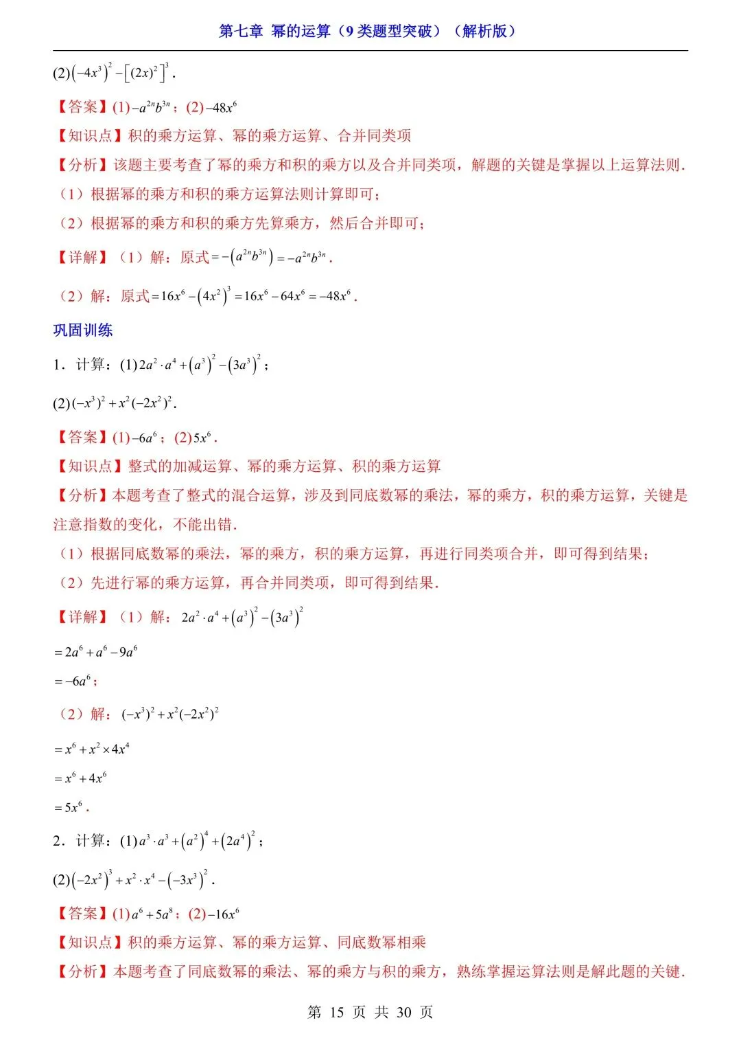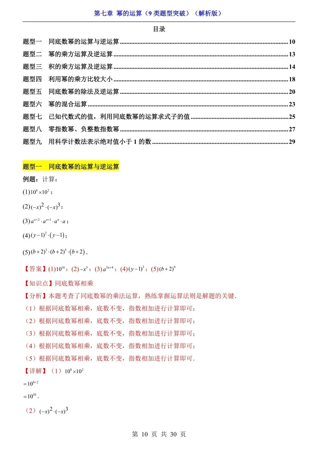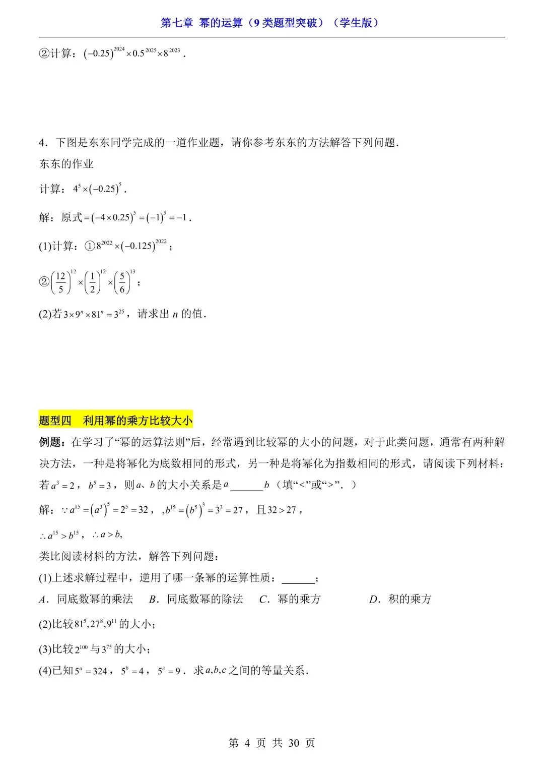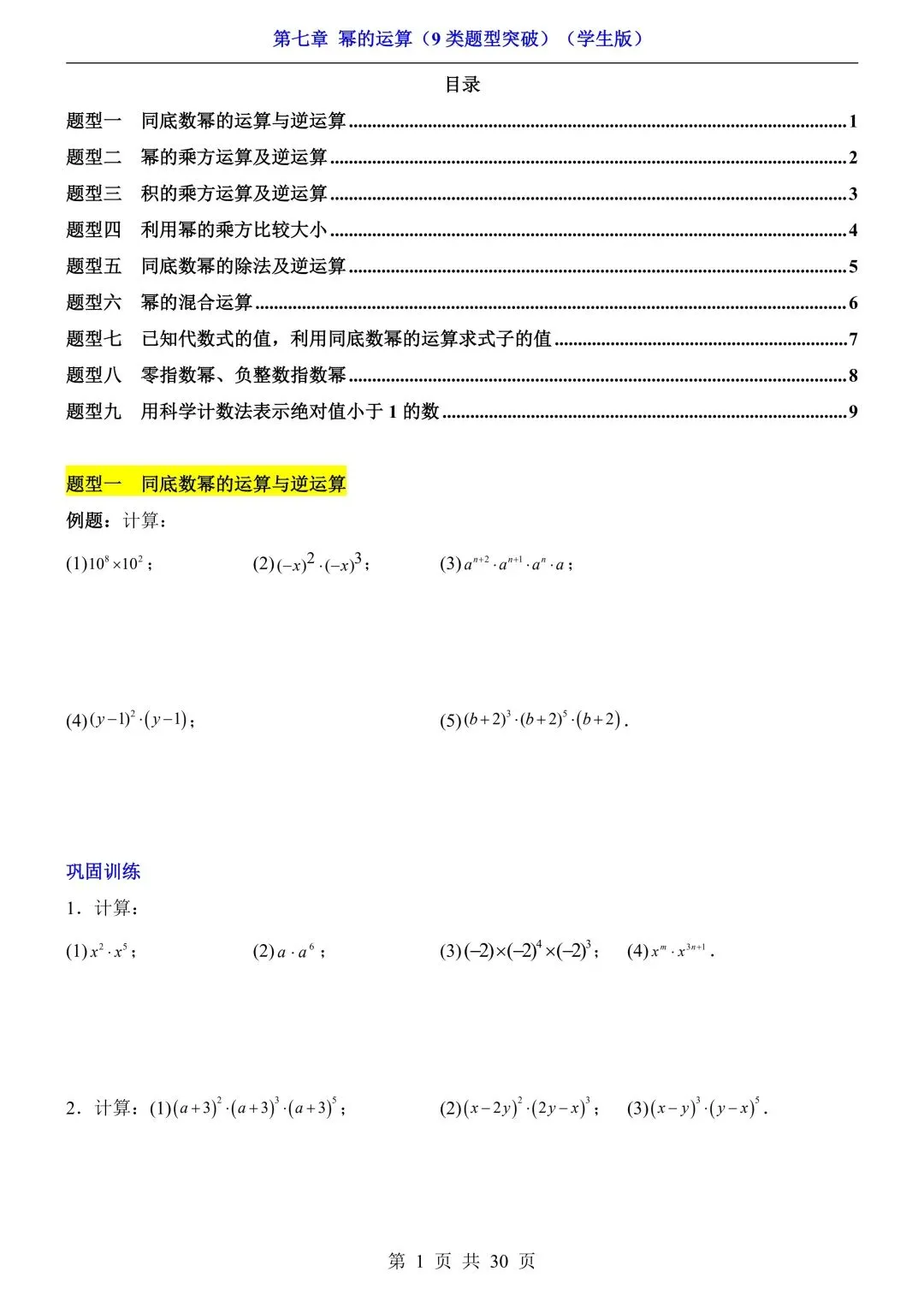 26年春七年级初一下册苏科版数学幂的运算9类题型突破专项训练【附答案解析】丨高清电子版可打印(317)