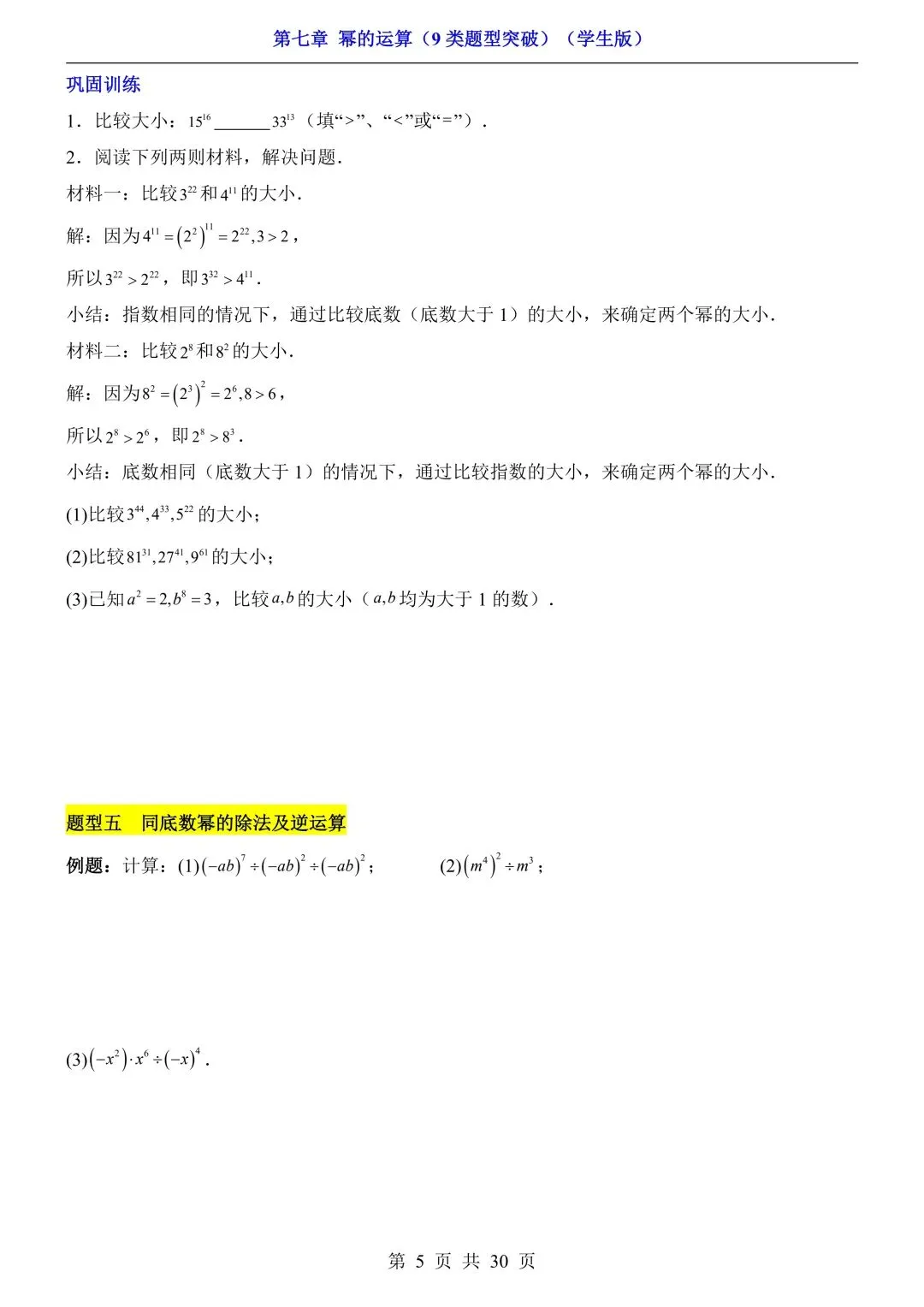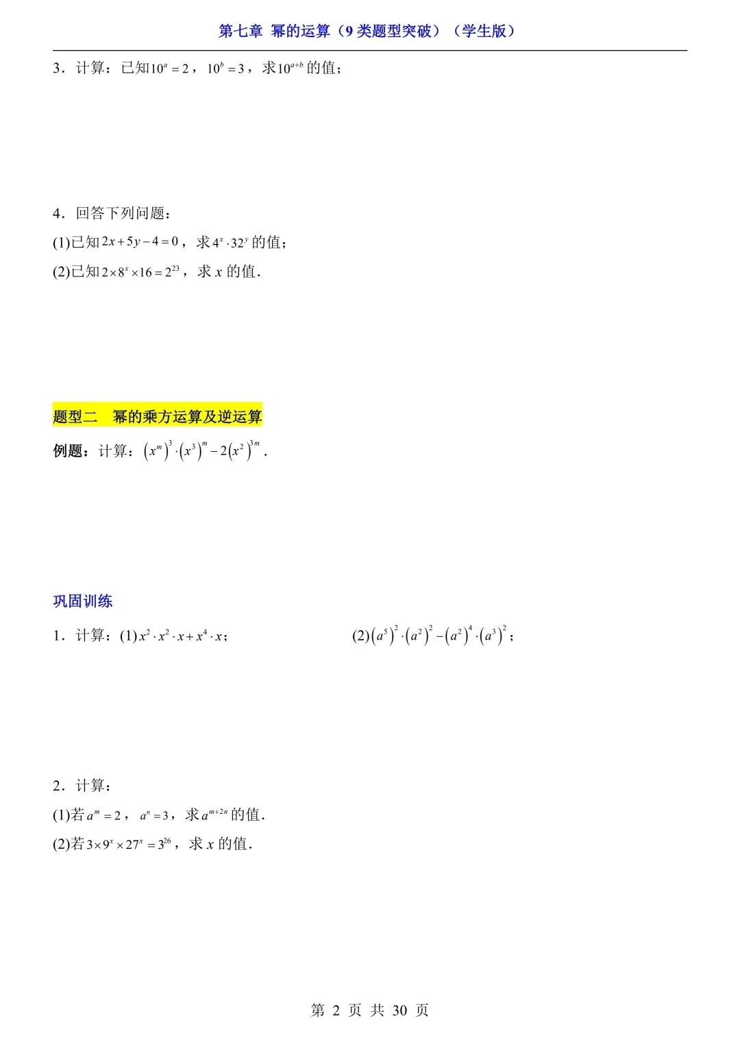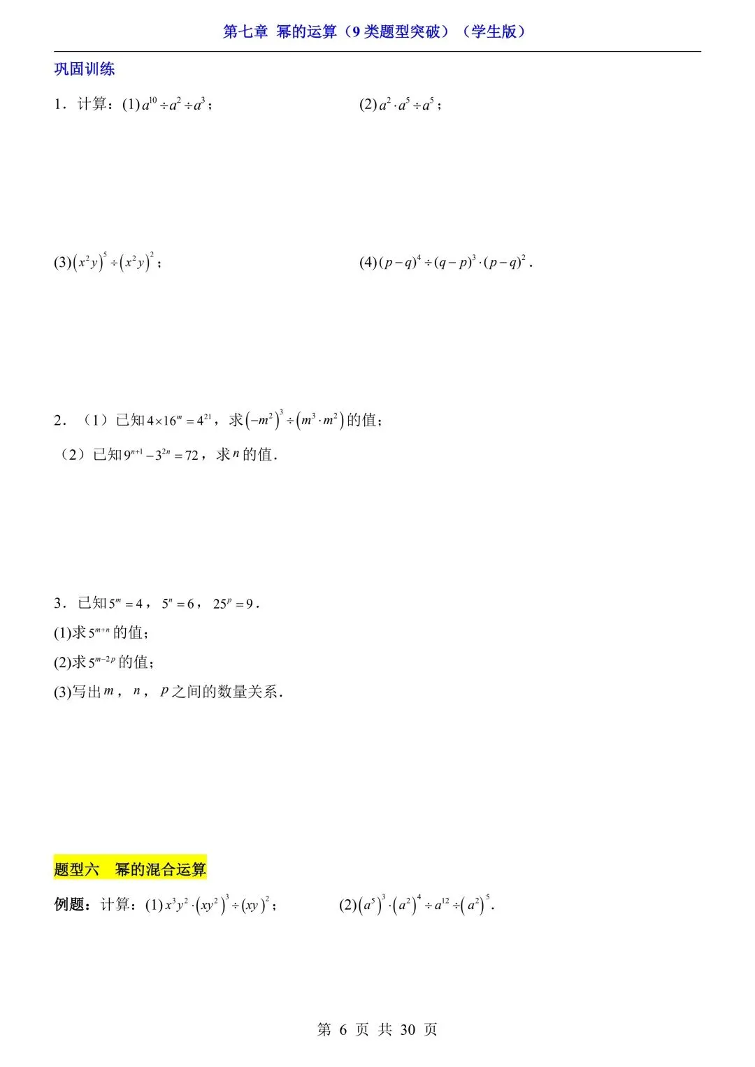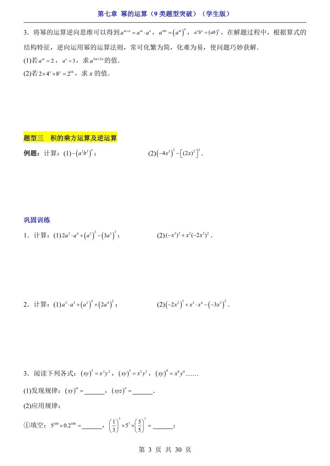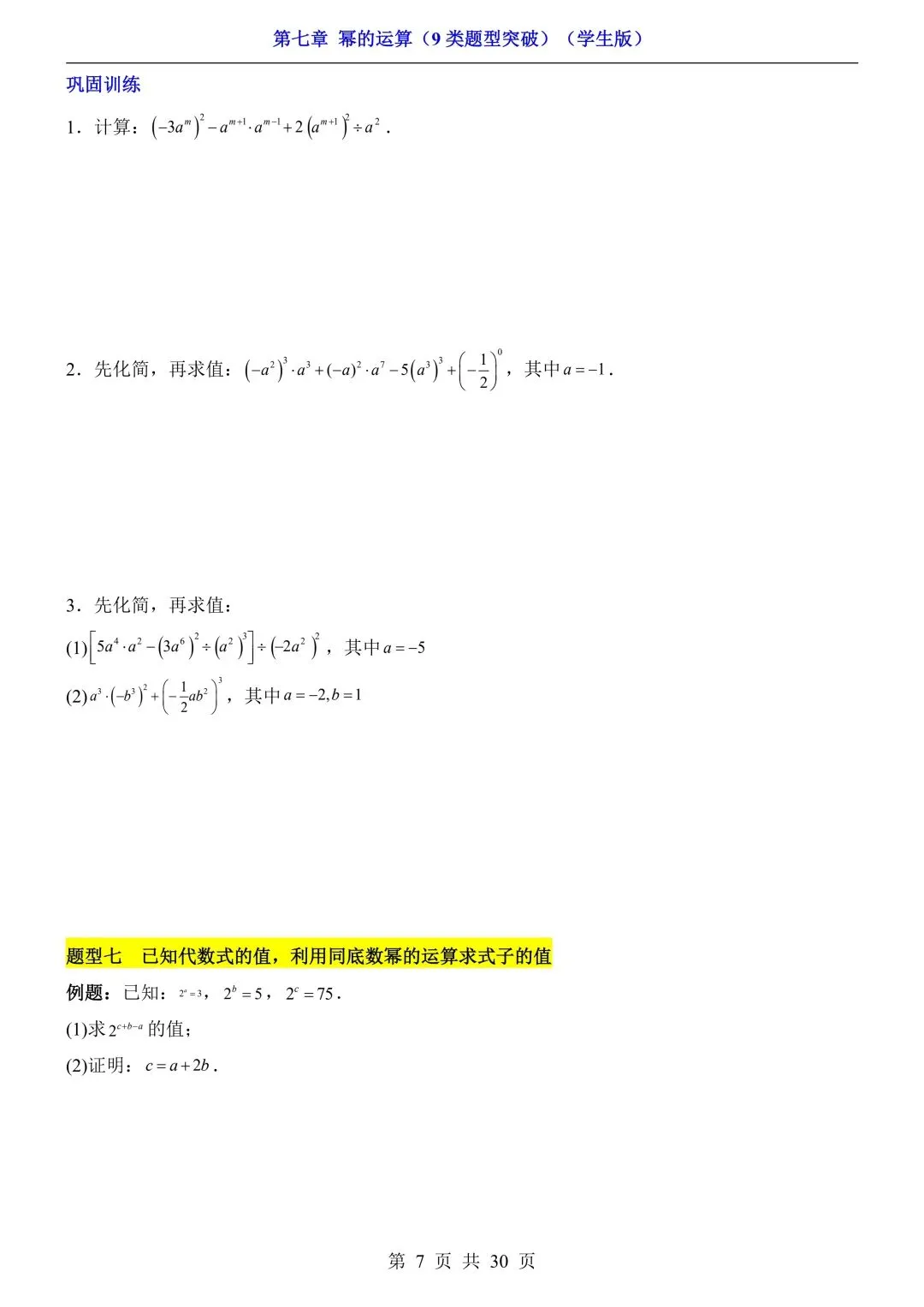 26年春七年级初一下册苏科版数学幂的运算9类题型突破专项训练【附答案解析】丨高清电子版可打印(317)