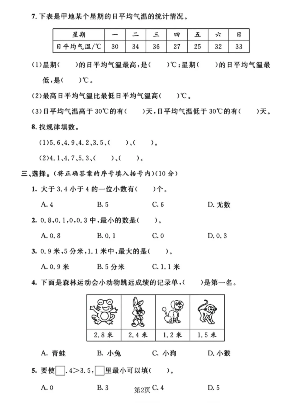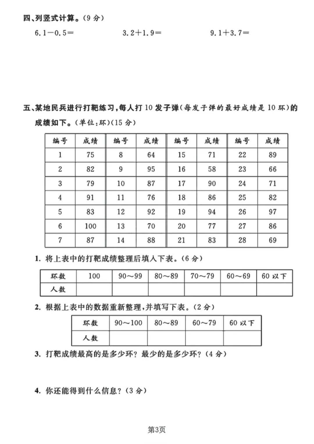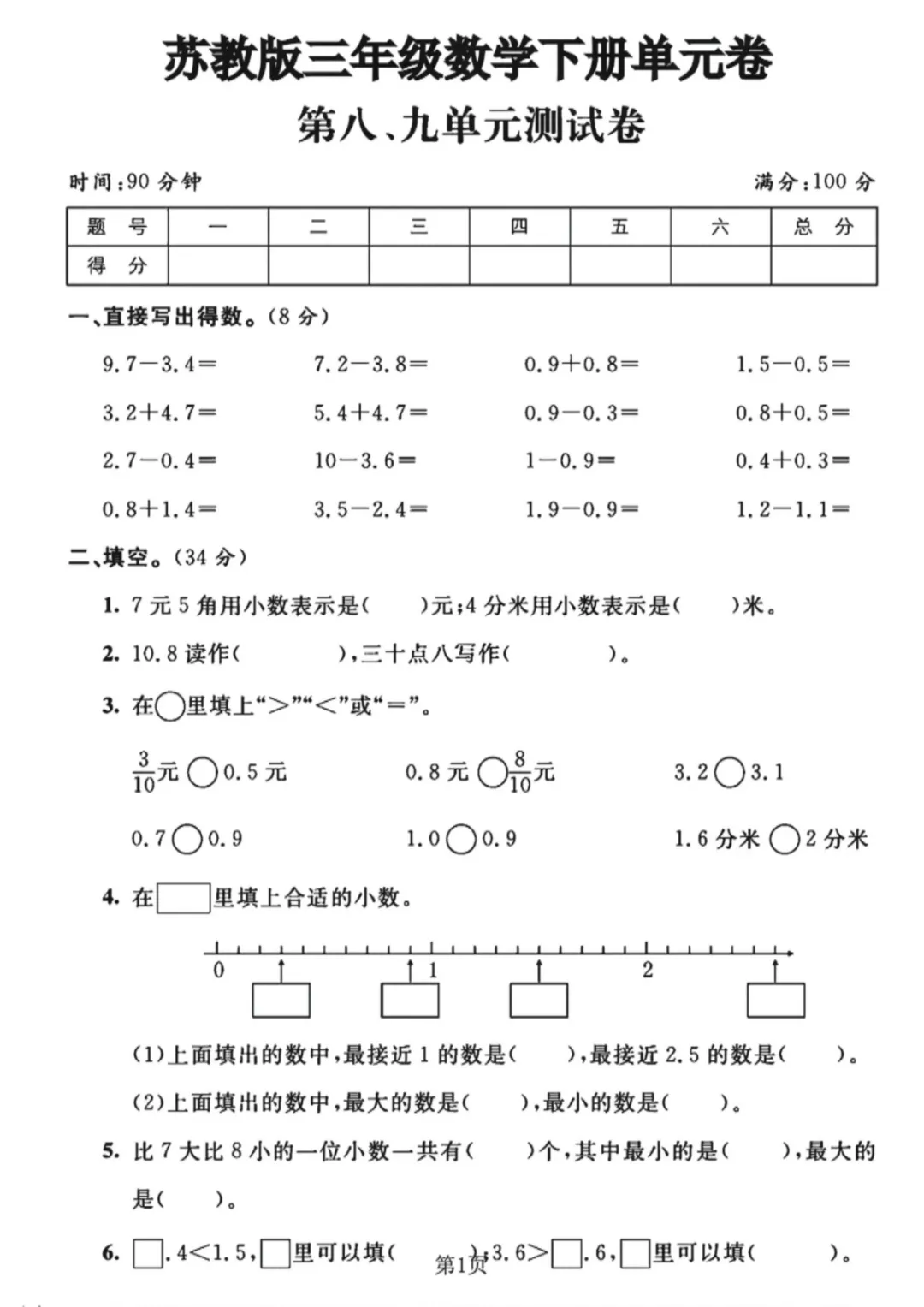 【高清电子版】三年级(下)数学 第八、九单元测试卷《苏教版》