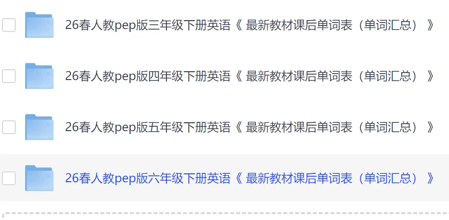 【26春】3-6年级下册英语人教EPE版《最新教材课后单词表(单词汇总)》可下载打印
